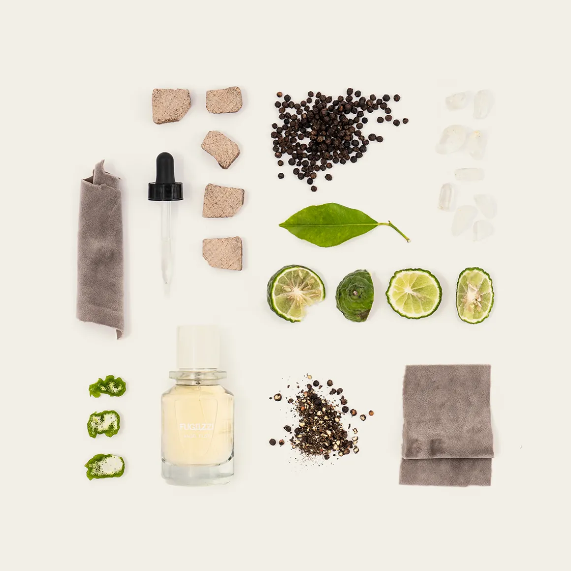Cashmeran, bergamot uit Calabrië, peper, kasjmier, witte amberkristallen