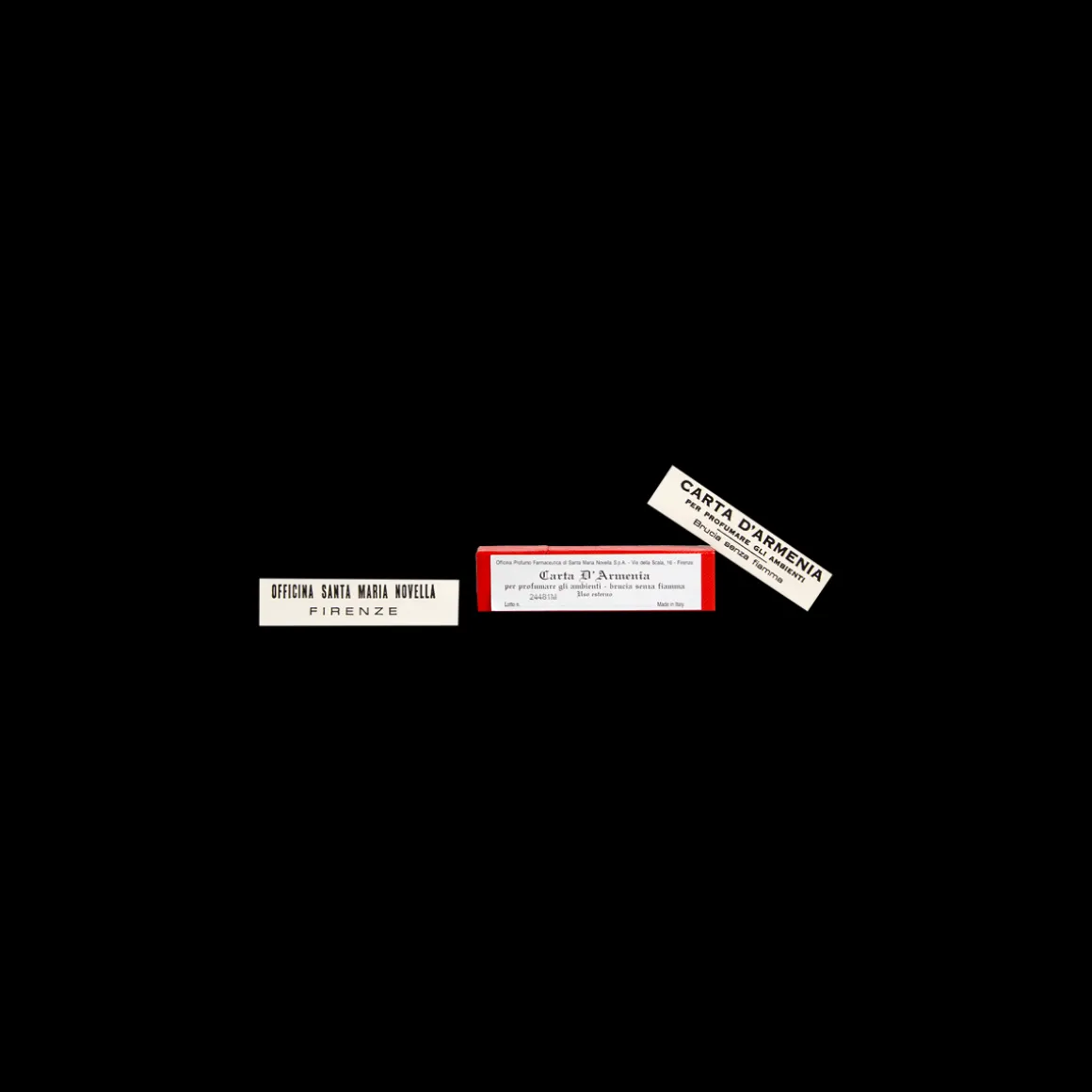De Carta d’Armenia van Officina Profumo-Farmaceutica di Santa Maria Novella zijn papieren strips, geparfumeerd met een infusie van harsen en oosterse kruiden. De strips branden zonder vlam en hun damp zuivert de lucht en parfumeert interieurs op mystieke wijze. Ze kunnen ook gebruikt worden om kleding te parfumeren door de geurende strips onaangestoken in lades of kasten neer te leggen.