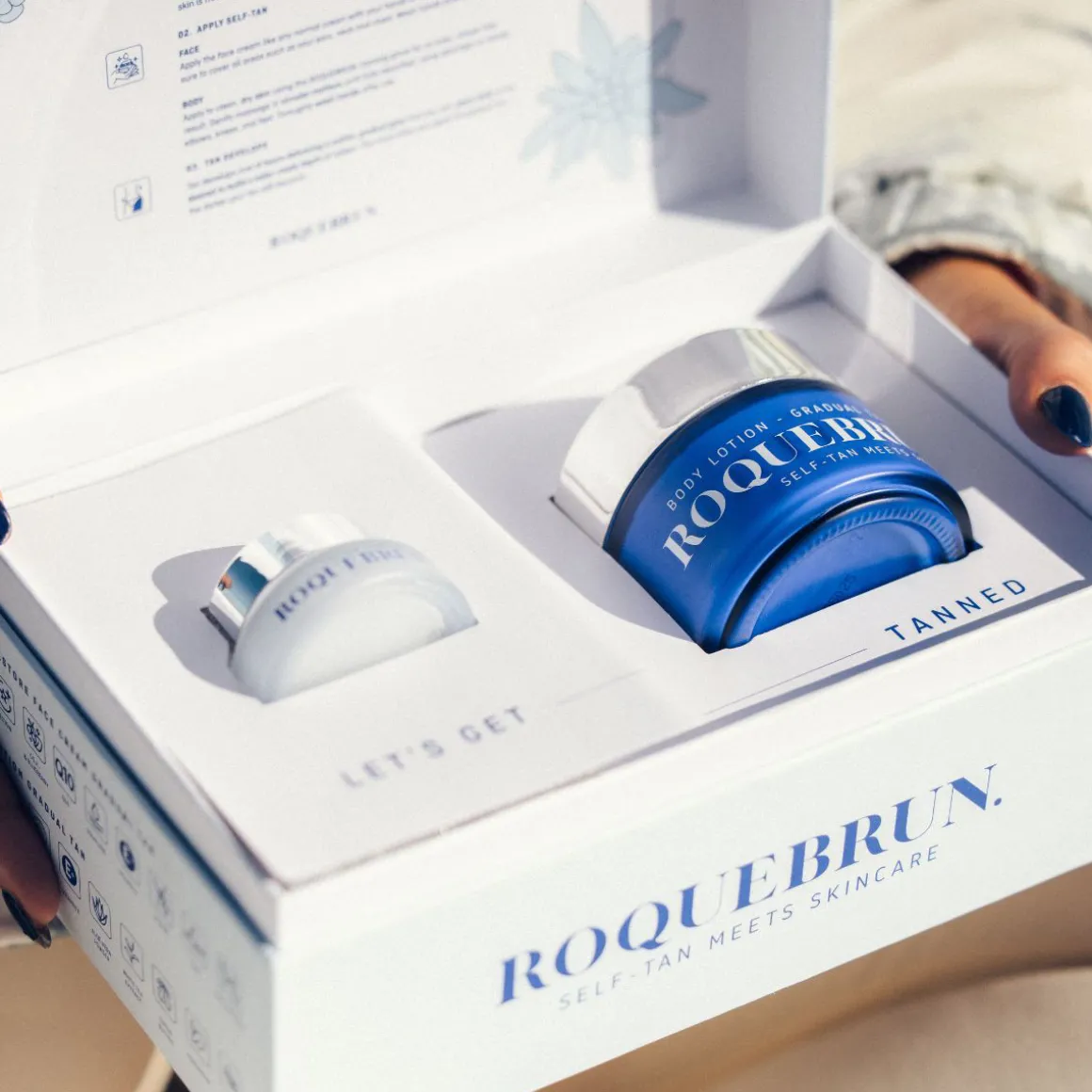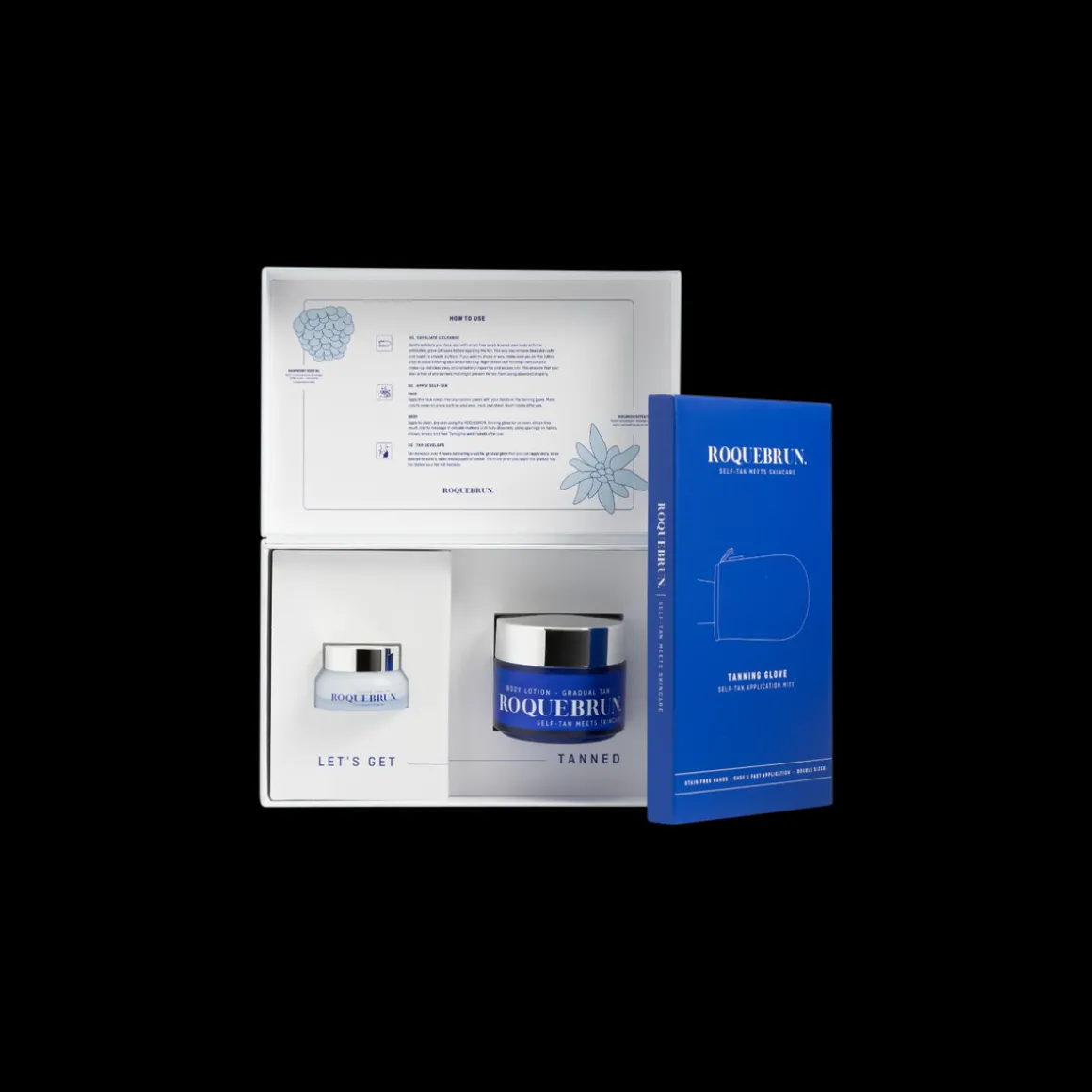 Tan Out of Ten Set van ROQUEBRUN bevat alles voor een natuurlijk ogende teint van top tot teen. Deze limited edition is samengesteld voor een gelijkmatige, subtiele glow. Een compleet verzorgingsmoment voor lichaam en uitstraling. Het perfecte cadeau om te geven, aan jezelf of een ander.
