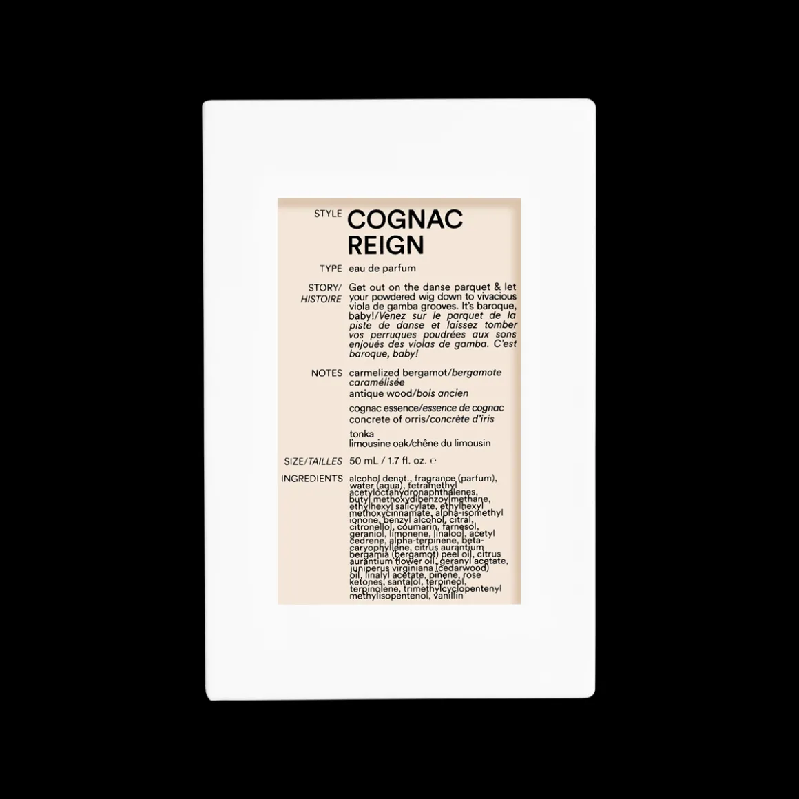 Trek je gepoederde pruik recht met Cognac Reign Eau de Parfum van D.S. & DURGA en begeef je op de dansvloer. Een speelse geur, geïnspireerd op barokke muziek en theatrale flair. Gedurfd, eigenzinnig en met een knipoog, een olfactorisch feest voor wie durft op te vallen.
