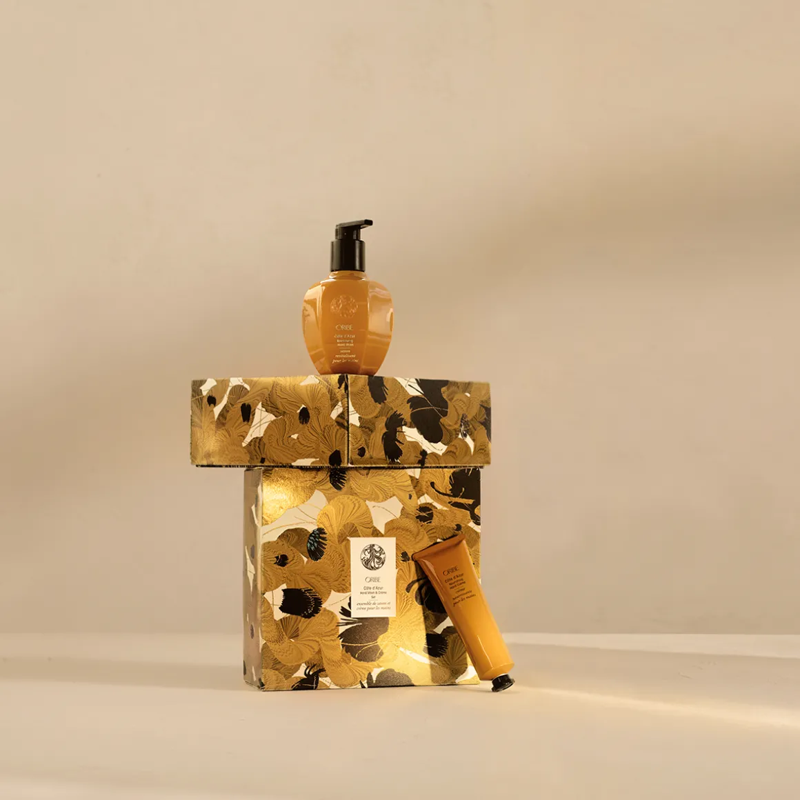 De Côte d’Azur Hand Wash & Crème Set van Oribe is onderdeel van de limited edition-collectie met Kustaa Saksi’s Golden Threads-kunstwerk, speciaal ontworpen voor Oribe’s jaarlijkse ode aan vakmanschap. De set bestaat uit een reinigende hand wash en verzorgende handcrème, verrijkt met Oribe’s kenmerkende geur. De formule reinigt mild, hydrateert intens en laat de handen zacht aanvoelen met een verfijnde, subtiele geur als elegant eindresultaat. Een dagelijkse verzorging die aanvoelt als een moment van verwenning.