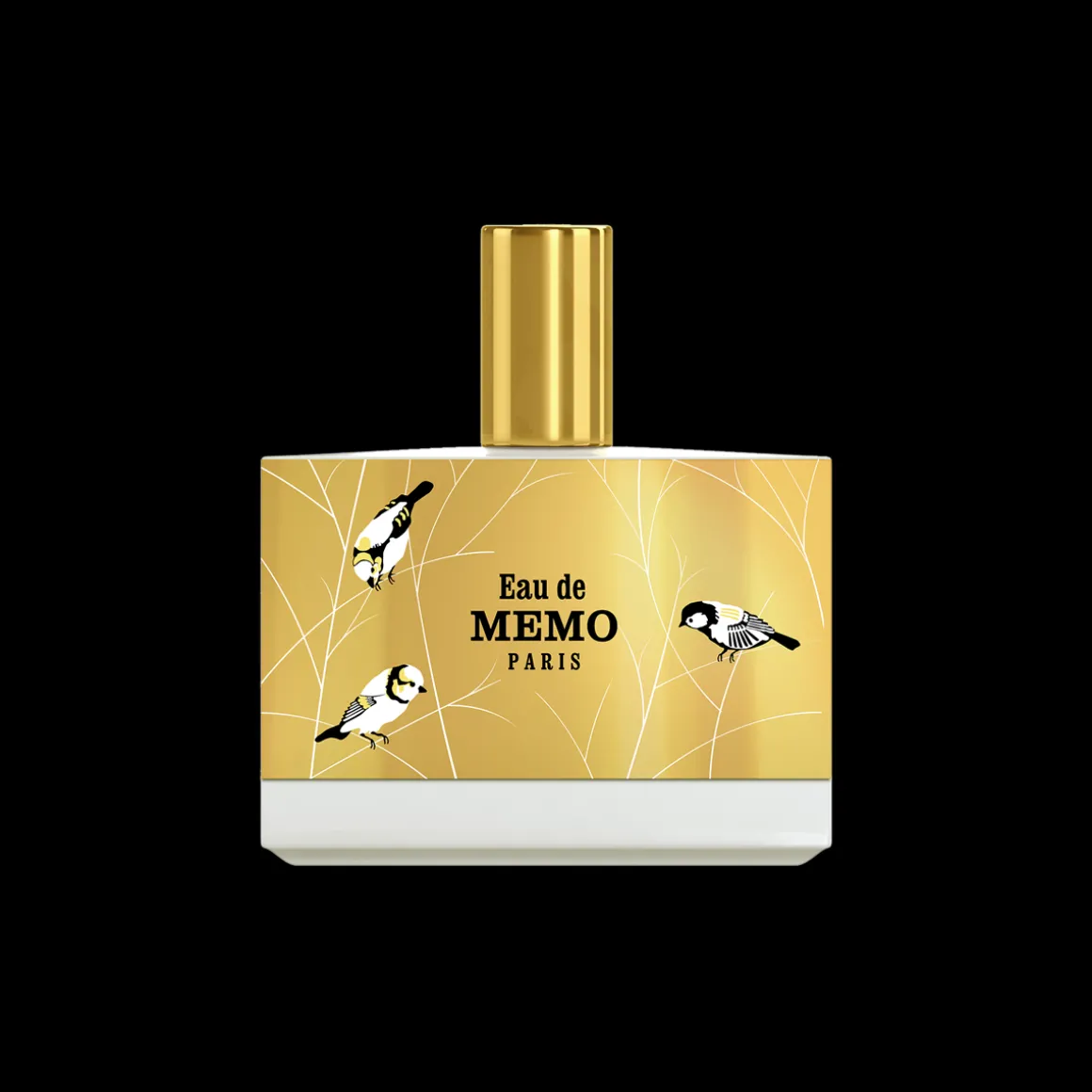 Eau de Memo is de essentiële geur van Memo Paris. Een vogel in vlucht. Het klapperen van vleugels, het geritsel van vleugels die over Parijs glijden. Het ontwaken van essentiële herinneringen. Het gefluister van de stad in de lucht, een fladderend hart. Een race naar steeds grotere hoogtes, verloren in het grote blauw. De hoop van een nieuwe horizon. Vertrek voorgoed en kom dan weer terug, een eindeloze ontdekkingsreis. Het parfum bevat noten van jasmijn, groene thee en leer.