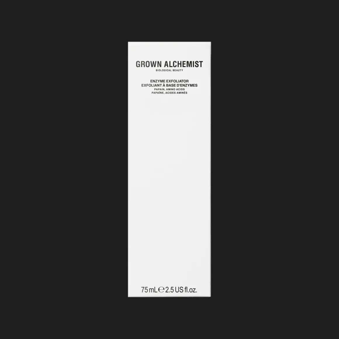 De Enzyme Exfoliator van Grown Alchemist is een enzymatische exfoliator die de huid in enkele minuten revitaliseert en de teint en textuur verfijnt. Met papaïne-enzymen, plantaardige aminozuren en een vitamine-rijk tropisch fruitcomplex worden dode huidcellen verwijderd, poriën gereinigd en de celvernieuwing gestimuleerd voor een heldere, frisse huid.