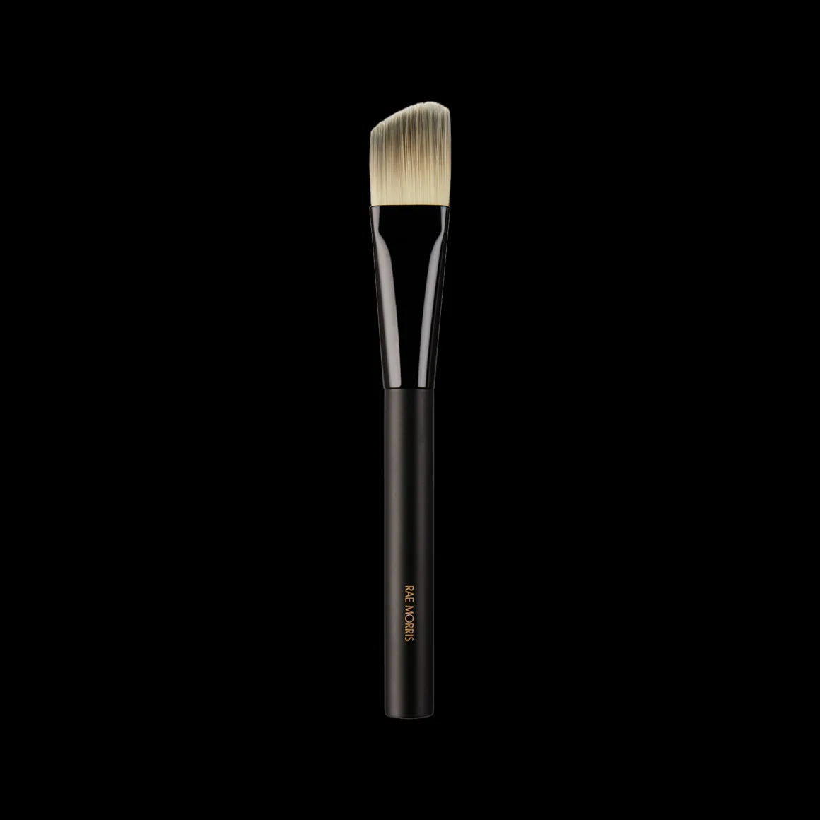 De #24 Foundation Contour van Rae Morris werkt perfect voor het aanbrengen van crème contour. Door de schuine afsnede van de kwast kan hij goed gebruikt worden om schaduwen langs de neus of kaaklijn te creëren.
