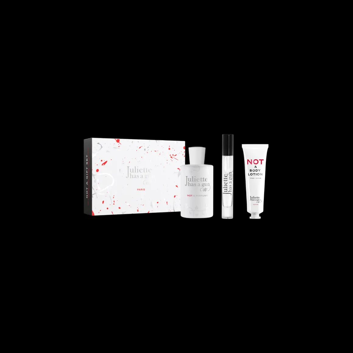 De meest royale set van de bestverkochte geur Not a Perfume van Juliette has a gun bevat een full-size flacon (100 ml), een travelspray van (7,5 ml) en een mini bodylotion (30 ml), alle drie geparfumeerd met het iconische, huidnabije parfum. Deze set is ontworpen om het feestseizoen extra bijzonder te maken. Not a Perfume is opgebouwd rond één ingrediënt, Cetalox, en staat bekend om zijn schone, subtiele geur die bij iedereen anders ruikt. De bijpassende bodylotion hydrateert en beschermt de huid dankzij glycerine, capric triglyceride en sheaboter en laat de huid zacht en licht geparfumeerd achter, zonder vet aan te voelen.