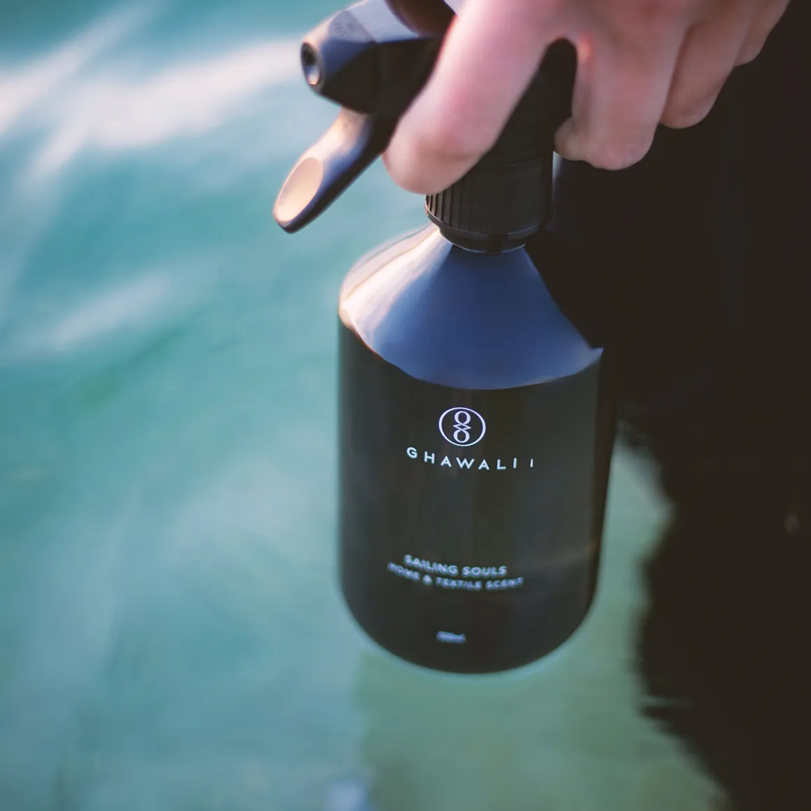 De Home & Textile Spray Sailing Souls van Ghawali verfrist stoffen en ruimtes met een langdurige, elegante geur. Eén spray volstaat om textiel, meubels of de lucht om je heen een nieuwe dimensie te geven. De geur opent helder en kruidig, en ontwikkelt zich tot een warm, houtachtig spoor dat doet denken aan verre reizen en stille ontmoetingen. Praktisch in gebruik en verfijnd in uitstraling – een eenvoudige manier om je omgeving persoonlijk en betekenisvol aan te laten voelen.