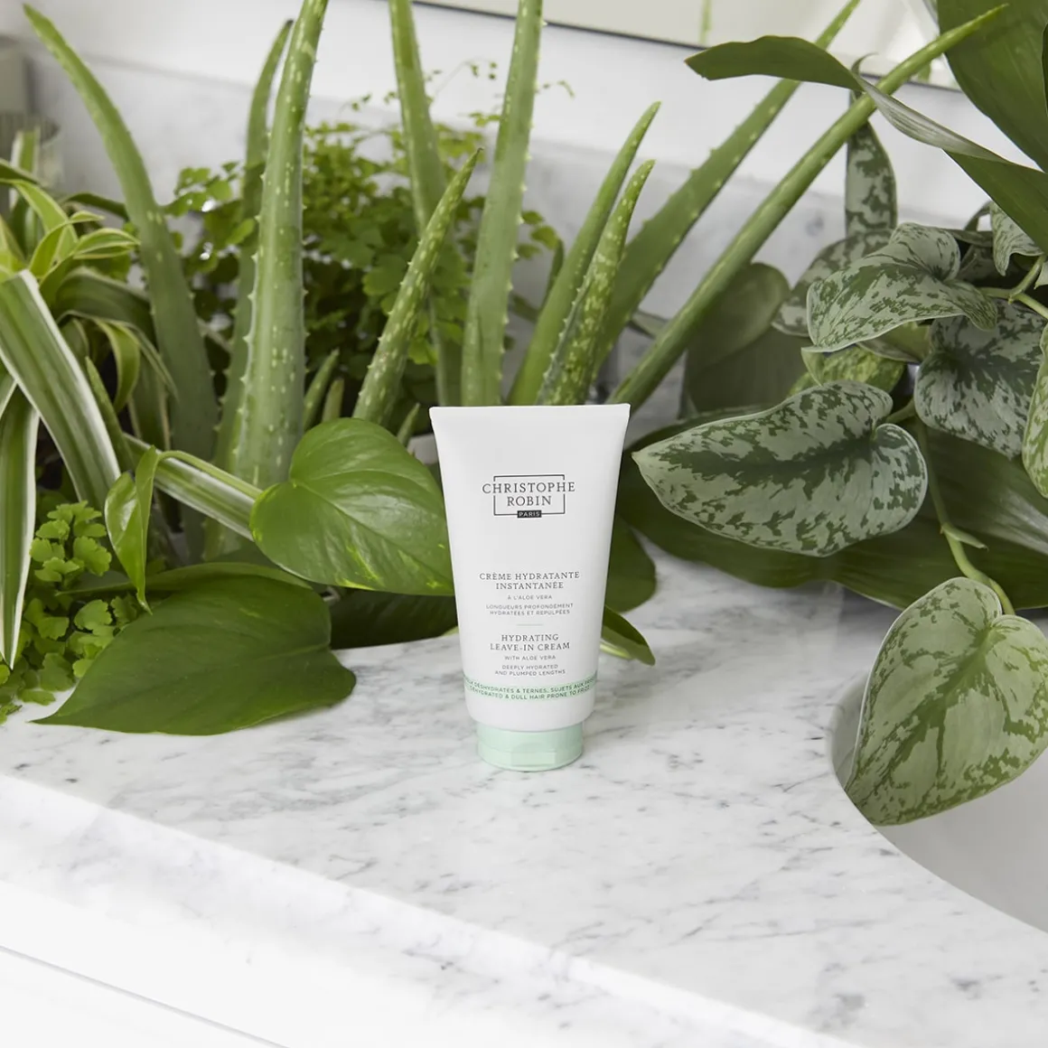 De Hydrating Leave-in-Cream with Aloe Vera van Christophe Robin is een lichtgewicht, zijdezachte crème die het haar glanzend en gezond maakt. De crème herstelt de vitaliteit van droog haar en vermindert gespleten haarpunten, waardoor het haar zacht en verzorgd aanvoelt.