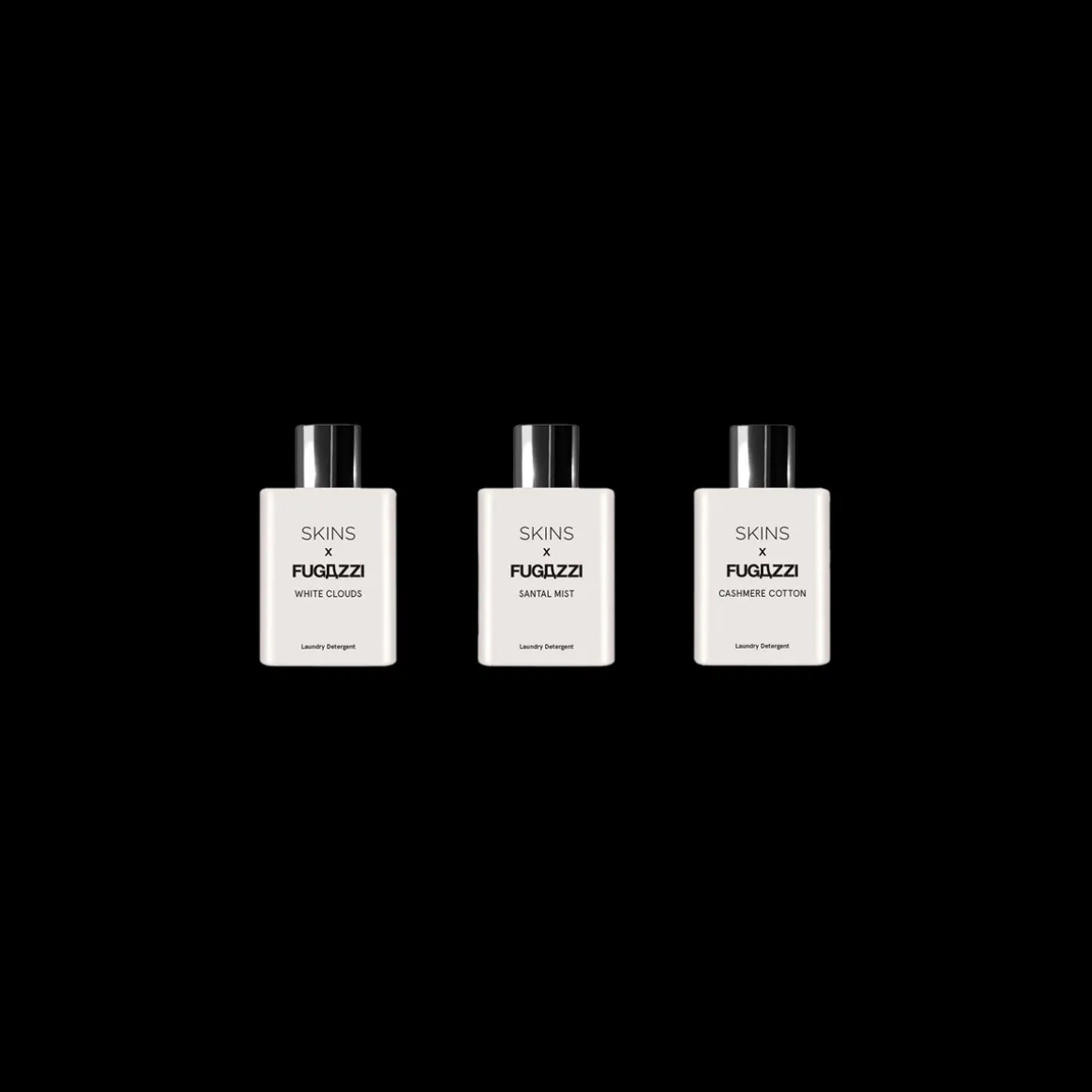 De Skins x Fugazzi Laundry Detergent Trio Set is een prachtig team aan buitengewone wasmiddelen. Deze verfijnde geurbelevingen zijn een verrijking voor iedere wasbeurt en blazen nieuw leven in deze alledaagse activiteit. Geniet van de clean geur van White Clouds, van de warme geur van Santal Mist en de poederige geur van Cashmere Cotton – zij parfumeren jouw favoriete kledingstukken met hun bijzondere geur.