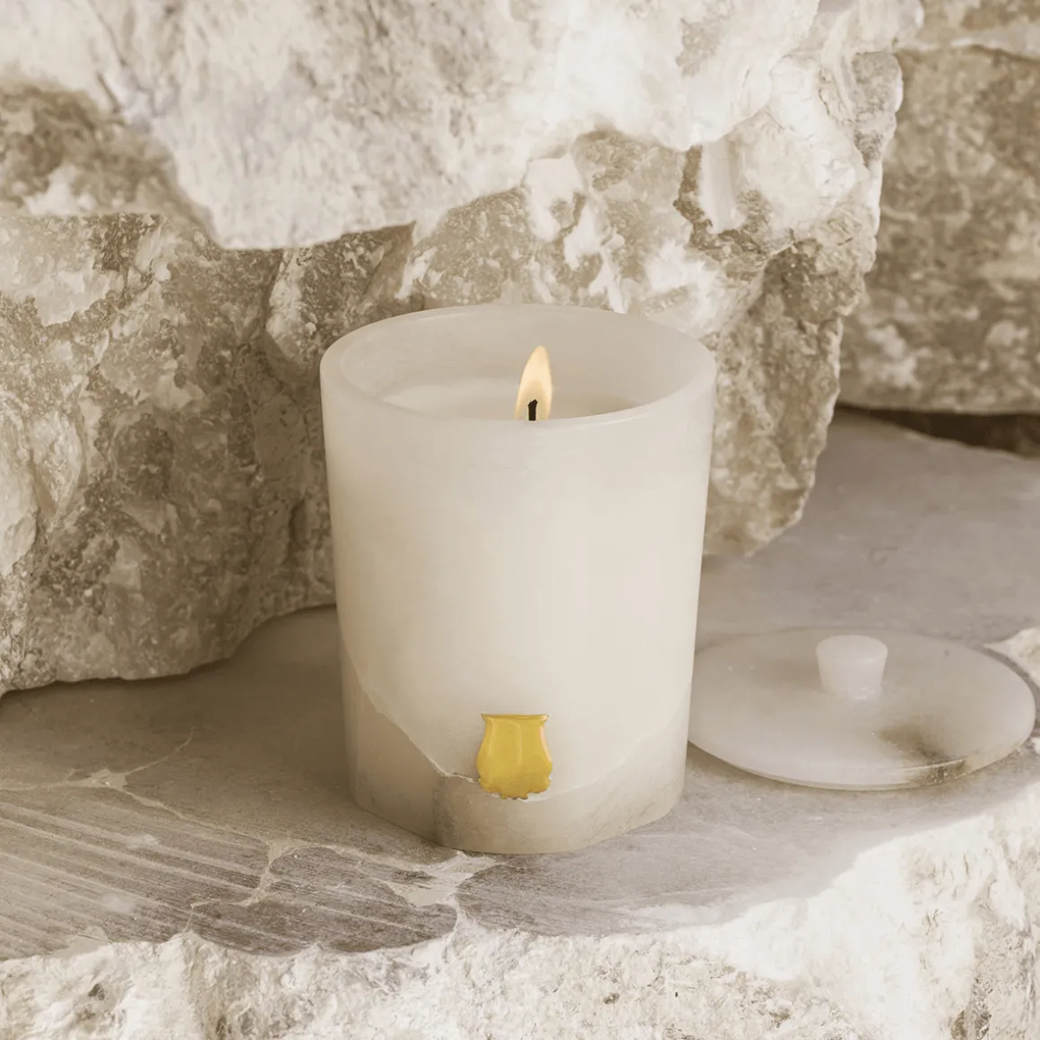 De Abd El Kader geurkaars van Cire Trudon is als onderdeel van The Alabasters collectie gehuld in een prachtige witte keramieken houder met bijbehorende deksel, en verspreidt de warme, kruidige geur van een traditionele muntthee in elke gewenste ruimte in huis. De Abd El Kader geur is geïnspireerd op Algerije: een windvlaag van vrijheid waait van de Macara-kust richting de bergen en neemt de geuren van verse munt, pittige gember en zware thee en tabak van de Ouled-Nail stam met zich mee. Topnoten: zwarte bes, citroen, kruidnagel, gember, munt, appel. Hart: jasmijn. Basis: vanille.