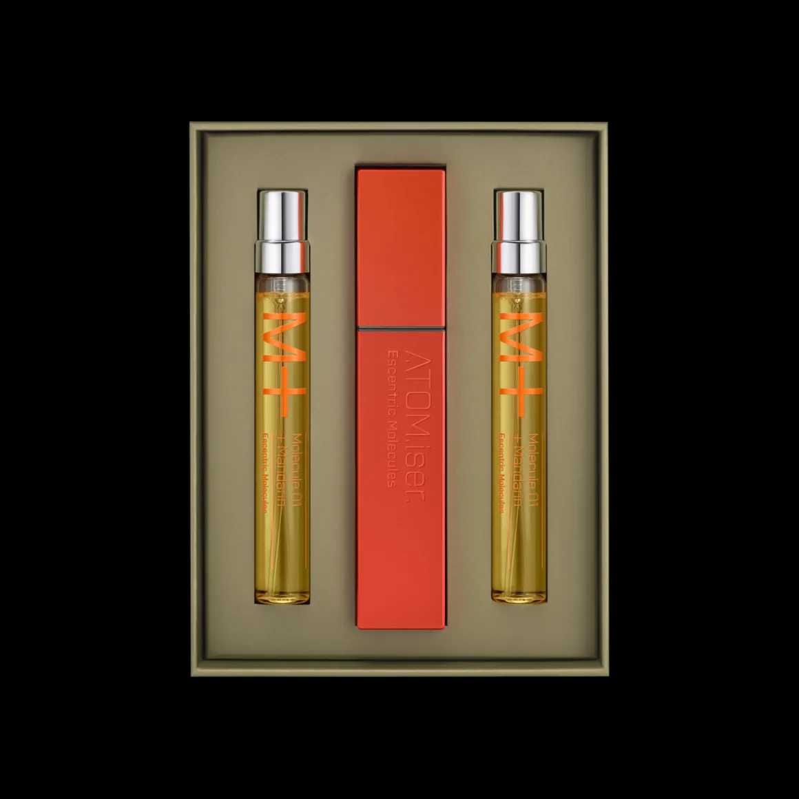 Ontdek de M+ Mandarin Atomiser Set van Escentric Molecules, een verfijnde geurverpakking in reisformaat. De ATOM.iser. is gemaakt voor duurzaamheid en ontworpen om je levensstijl onderweg te verbeteren. Het draai-en-spuitmechanisme zorgt ervoor dat je je favoriete Escentric Molecules-geur altijd bij de hand hebt. Molecule 01 + Mandarin bestaat uit Iso E Super + Mandarin. M+ Mandarin is een geur met een verhaal dat draait en keert. In de eerste akte is de stevige tint van mandarijn meteen raak. Als de bruisende noot begint te vervagen, wordt in de tweede akte Iso E Super toegevoegd, vermengd met de frisheid van citrus. In de laatste scène verlaat mandarijn langzaam het podium, waardoor het erogene solonummer van Molecule 01 in de schijnwerpers komt te staan.