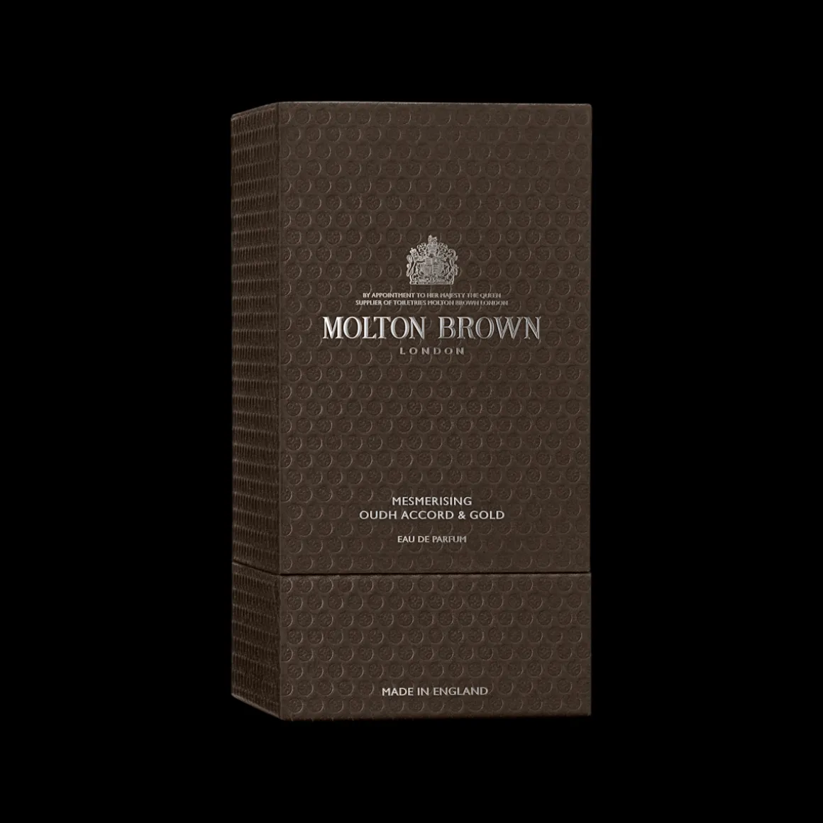 Mesmerising Oudh Accord & Gold Eau de Parfum van Molton Brown is een warme en houtachtige geur in reisformaat. Versterkt met diepe, rijke saffraan, laten de noten van zwarte thee, vanille en kostbaar oud hout je diep duiken in de mysteries van Assam, India. De geur heeft een hars en –houtachtig signatuur, en is verrijkt met accenten van bergamot, tabak en honing. Laat je meenemen op deze kruidige, bedwelmende reis met Oudh Accord & Gold Eau de Parfum.