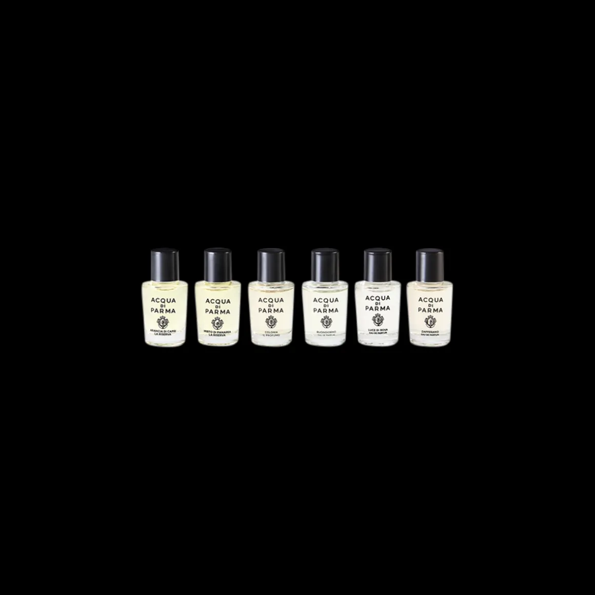 Deze Miniatuur Set van Acqua di Parma, gepresenteerd in een speciale doos versierd met Cristina Celestino’s gedurfde grafische herinterpretatie van traditioneel vakmanschap, is een samengestelde ontdekking van Acqua di Parma-geuren. Een miniatuur parfum set met een selectie van zes geuren: