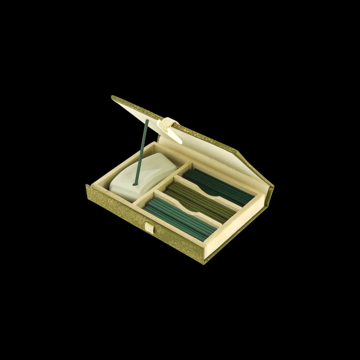 Ontdek Mori No Kaori Incense van Nippon Kodo. Drie bosgeuren: den, hinoki ceder en cederhout. De paulowniahouten doos beschermt het wierook tegen vocht. Links komt de houtachtige noot van den samen met de diepte van hars voor een vochtige en frisse geur, als een rustig bos bij een kabbelende beek. In het midden zorgt de houtachtige noot van hinoki of Japanse cipres voor een ontspannend en verfrissend gevoel, als de wind die door de bomen waait. Rechts doet de groene houtachtige geur met een verfrissende cedernoot denken aan een ochtend in het bos, schone lucht en vogelgezang. Nippon Kodo gebruikt natuurlijke grondstoffen van de hoogste kwaliteit. Hout, kruiden en specerijen worden volgens waardevolle traditionele technieken gemengd om wierook van uitzonderlijke kwaliteit te produceren.