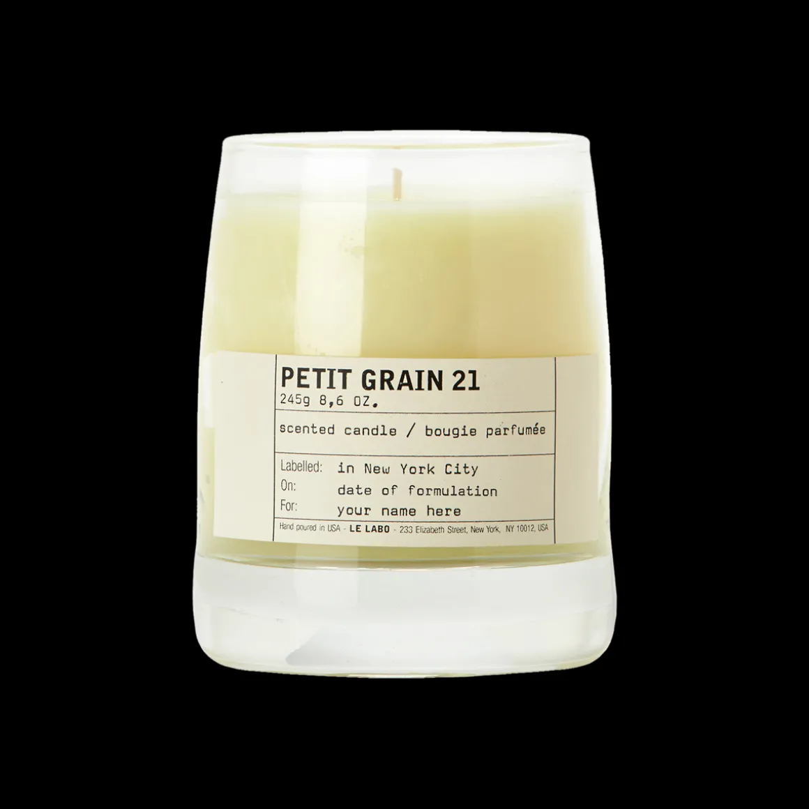 Le Labo’s Petit Grain 21 kaars is gemaakt van geparfumeerde veganistische sojawas, hand gegoten in een glazen houder. De rijke geur zal het huis een heerlijke en onvergetelijke ambiance geven. Een rijke, elegante samenstelling van oranjebloesem met heerlijke groene ondertonen. Deze kaars betovert uw kamer in een fraaie, luchtige sinaasappelbomen tuin. Circa 60 branduren.
