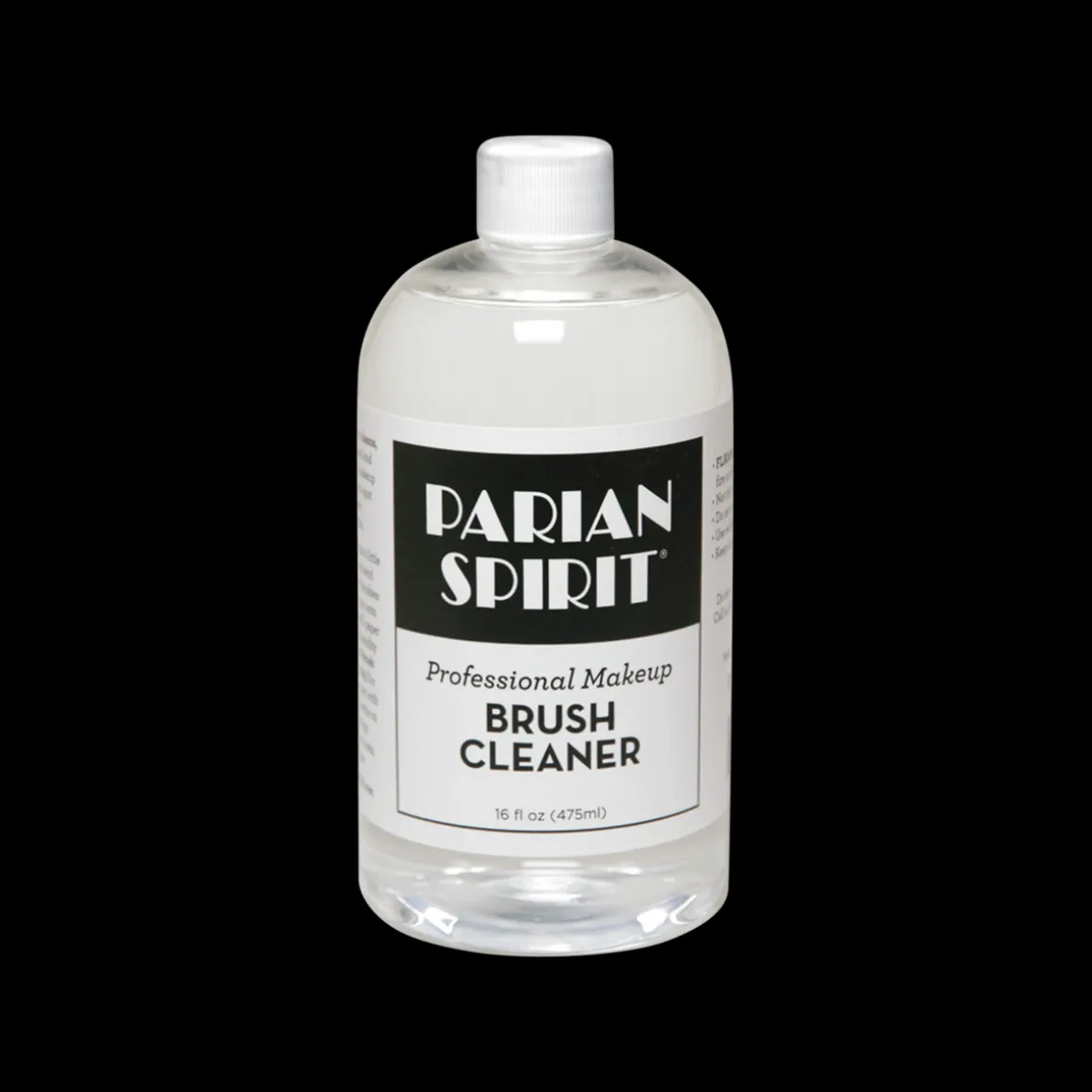 De handige fles is perfect voor het reinigen van grotere poederkwasten als de droogtijd beperkt is. Breng een kleine hoeveelheid van Parian aan op het opzetpenseel zonder deze in te weken en gebruik een tissue of keukenhanddoek om het voorzichtig te deppen en te drogen. Deze fles kan ook gebruikt worden om werkbladen en make-uptassen mee schoon te maken.