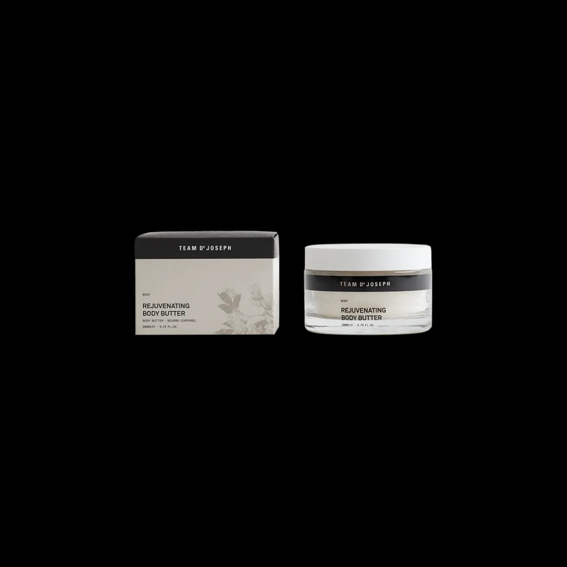 De Rejuvenating Body Butter van TEAM DR JOSEPH is een voedende en verzorgende body butter met fyto-retinol, argan en antioxidanten. Deze romige formule hydrateert diep, verbetert de elasticiteit van de huid en gaat tekenen van veroudering tegen. De butter geeft een zijdezachte finish met een subtiele glow zonder vettig aan te voelen, ideaal voor de droge en rijpere huid.
