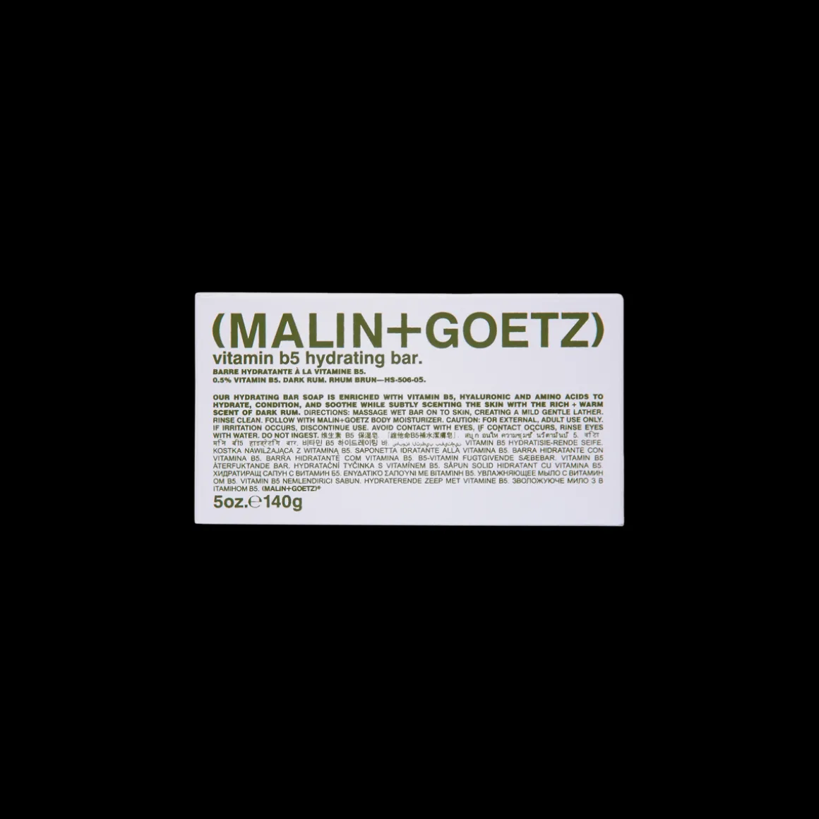 De Rum Vitamin B5 Hydrating Bar van MALIN+GOETZ verrijkt met krachtige ingrediënten spoelt deze formule vuil en onzuiverheden weg terwijl het essentiële vocht wordt vastgehouden, voor een huid die direct verfrist, fluweelzacht en diep gehydrateerd aanvoelt -nooit strak of droog. De Rum Vitamin B5 hydraterende bar creëert een rijk schuim die moeiteloos glijdt, terwijl het de huid parfumeert met onze bestverkopende Dark Rum-geur.