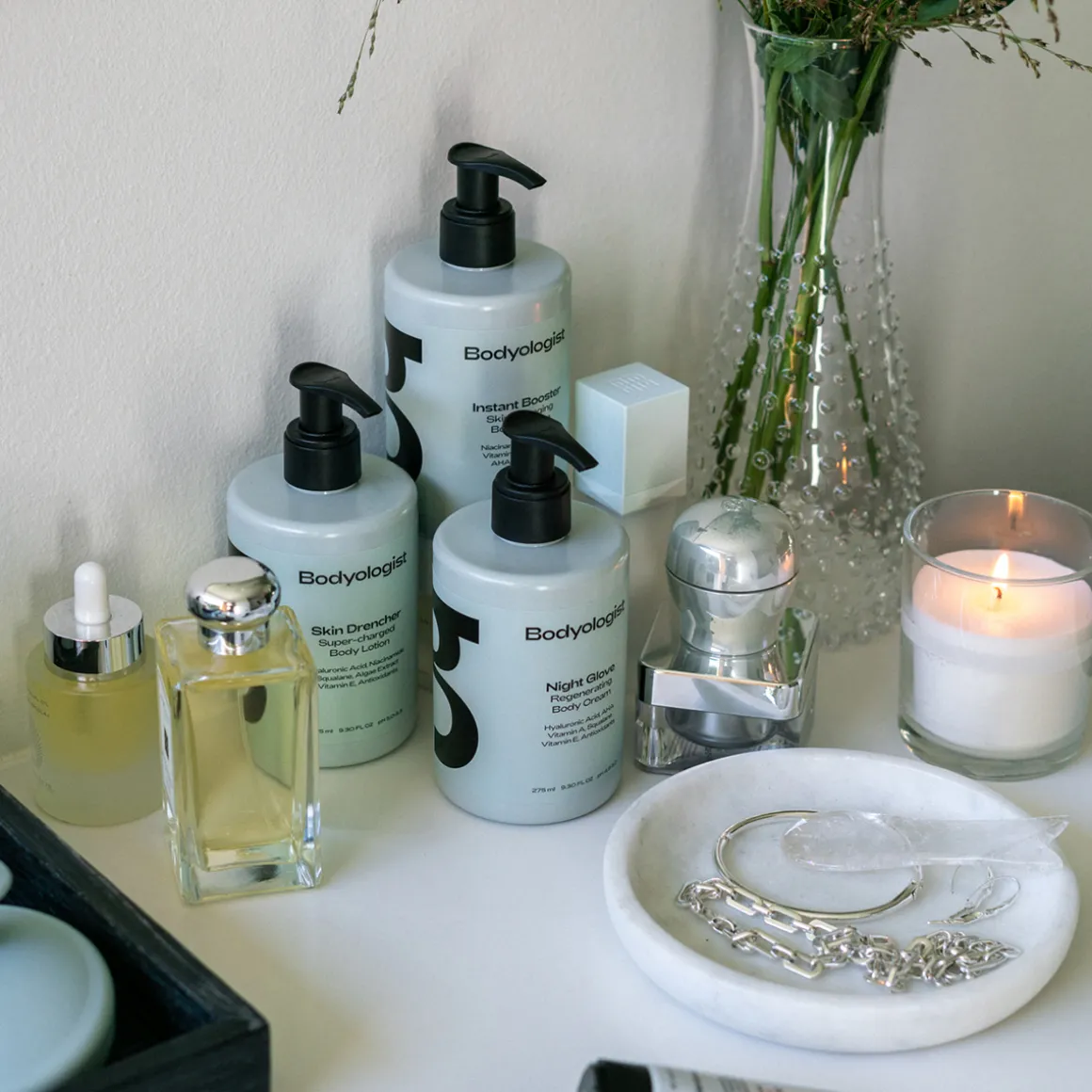 De Skin Drencher Super-charged Body Lotion van Bodyologist is een verzorgende bodylotion die de huid zacht, soepel en gehydrateerd laat aanvoelen. Een krachtige blend van effectieve ingrediënten verbetert teken van veroudering en brengt vocht tot diep in de huid. Dit brengt de huidbarrière weer in balans en egaliseert de huid. Roodheid wordt verminderd en de huid is optimaal beschermd tegen vrije radicalen en vervuiling. Geniet van een stralende huid die zijdezacht aanvoelt en subtiel geparfumeerd ruikt dankzij verkwikkende noten van eucalyptus en rozemarijn.