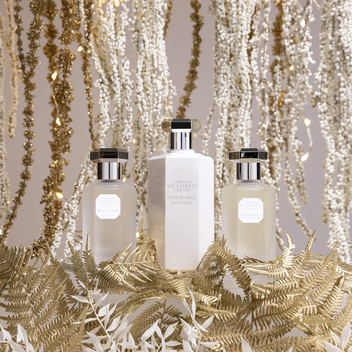 De Teint de Neige Gift Set van Lorenzo Villerosi is een perfect kado voor iemand die houdt van een zachte, omhullende geur. De gift set bevat de Teint de Neige Eau de Parfum (50 ml), de -bodylotion (250 ml) en de -hairspray (50 ml). De guer is subtiel doordrenkt met de rijkdom van natuurlijke extracten van kostbare rozen, jasmijn en ylang ylang bloemen om de delicate schoonheid en vrouwelijkheid van de Belle Epoque op te roepen.