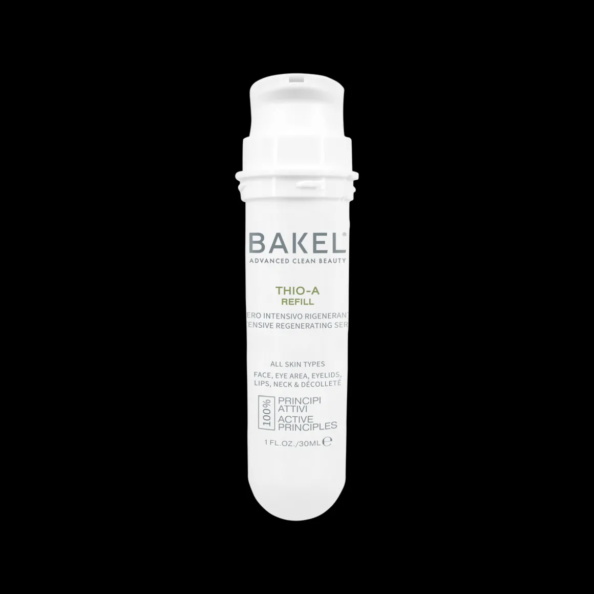 Thio-A Serum Refill van Bakel is een geavanceerd serum dat werkt tegen de vertraging van celvernieuwing en onevenwichtigheden in talgproductie. De zesentwintig pure actieve ingrediënten met bewezen anti-verouderende werking stimuleren celregeneratie en verbeteren zichtbaar de teint, elasticiteit, gladheid en gelijkmatigheid van de huid.