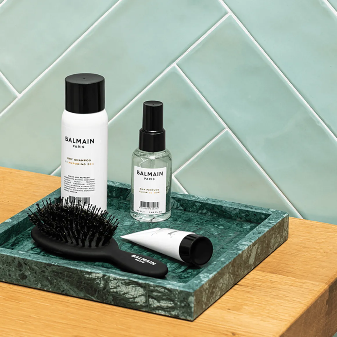Het Balmain Hair Travel Silk Perfume is een voedende haarspray die het haar een zijdezachte finish geeft. De weldadige formule is verrijkt met pure Arganolie en zijde proteïne om de vochtbalans te stimuleren en om droog en zwak haar te beschermen tegen externe invloeden. Dankzij de spray krijgt het haar een langdurige glans en wordt het voorzien van de kenmerkende Balmain Hair geur.