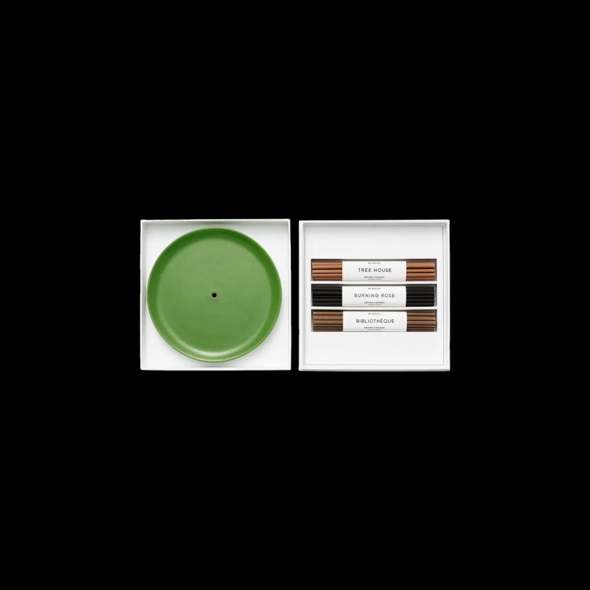 Byredo Trois Encens Set: een oude traditie wordt een nieuwe zintuiglijke ervaring wanneer Trois Encens drie iconische geuren: Bibliothèque, Burning Rose en Treehouse, opnieuw verbeeldt in de vorm van wierookstokjes. Handgemaakt in Tokio, de 60 geparfumeerde stokjes (20 van elke geur) zijn groter dan traditionele Japanse wierook, voor een langzamere brandtijd van 30-40 minuten. Elke set wordt geleverd met een handgemaakte keramieken wierookhouder, zodat ze direct uit de doos gebrand kunnen worden.