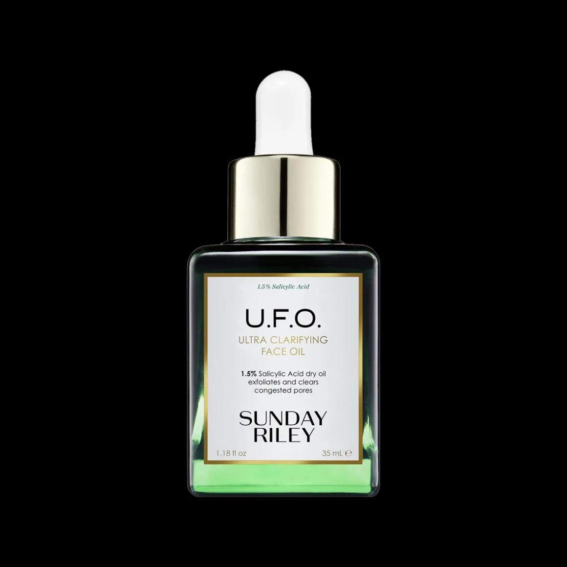 U.F.O. Ultra Clarifying Treatment Facial Oil van Sunday Riley is een snelwerkende, sneldrogende, medicinale olie met 1,5% salicylzuur, die acne en mee-eters verwijdert voor een gladdere, zuivere huid en een meer egale teint. Als tegenwicht voor de mogelijk uitdrogende effecten van salicylzuur, voeden mariadistel en komkommerzaadolie de huid en vervagen lijntjes en rimpels, zonder een vettig laagje achter te laten. Kamille en neroli kalmeren de gestreste, onzuivere huid. Ook zeer geschikt voor acne op rug en hoofdhuid.