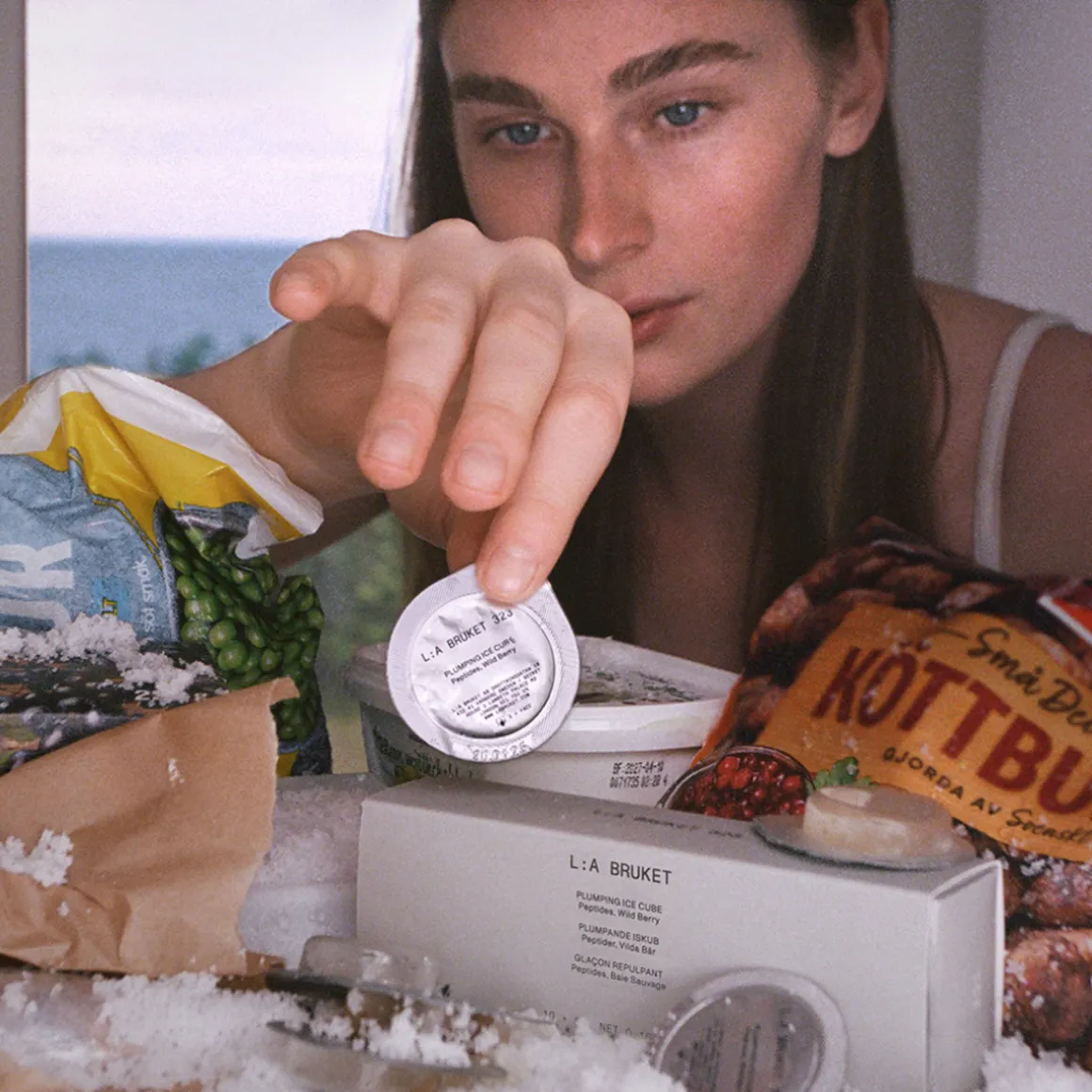 De 323 Plumping Ice Cube van L:a Bruket is een innovatieve skincare-stap die de huid verkoelt, verfrist en zichtbaar voller maakt. Deze cryo-inspiratie werkt direct verstevigend en laat de teint stralen met een frisse, gezonde glow. De huid oogt gladder, voelt steviger aan en krijgt een hernieuwde elasticiteit. De formule is ontwikkeld om fijne lijntjes te verzachten en de huidstructuur te verbeteren—zonder de gevoelige huid uit balans te brengen. Gebruik als tweede stap in de Cold Sea Glow-routine voor een verkwikkende ervaring die de huid een dauwfris en jeugdig aanzien geeft..