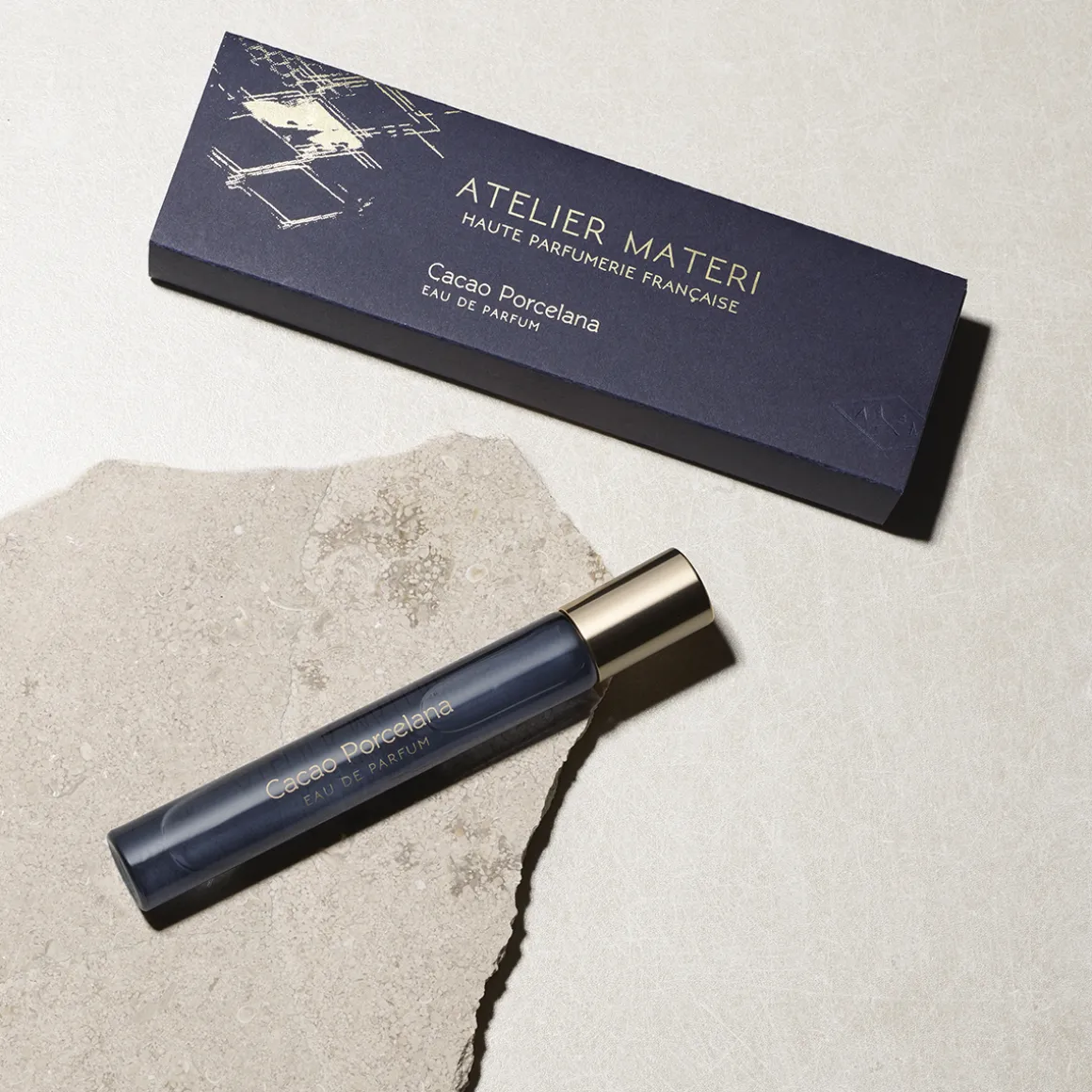 Cacao Porcelana Eau de Parfum van Atelier Materi is een zoet, houtachtig parfum waarin witte cacao uit Peru centraal staat. De bittere intensiteit van cacao wordt verzacht door de romige tonen van rum en de florale nuances van jasmijn uit India. Sandelhout en tonkaboon zorgen voor een warme, omhullende afronding.