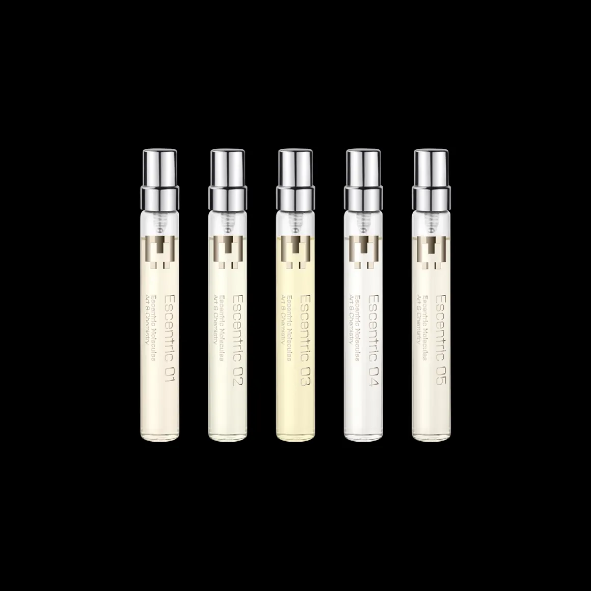 De Discovery Set Escentric is perfect geschikt om kennis te maken met de moleculaire parfums van Escentric Molecules. De geuren van dit parfumhuis zijn minimalistisch, excentriek en verfijnd. Elk parfum uit de Escentric-lijn bevat één uitzonderlijke geurmolecule, zoals Iso E Super of ambroxan, aangevuld met bijpassende geurnoten.