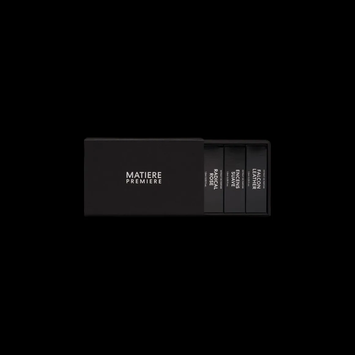 Bevat vijf samples (1,5 ml) van Matiere Premiere: Crystal Saffron Extract, Radical Rose Extract, Falcon Leather Extract, Incense Suave Extract, Sandalwood Austral Extract.