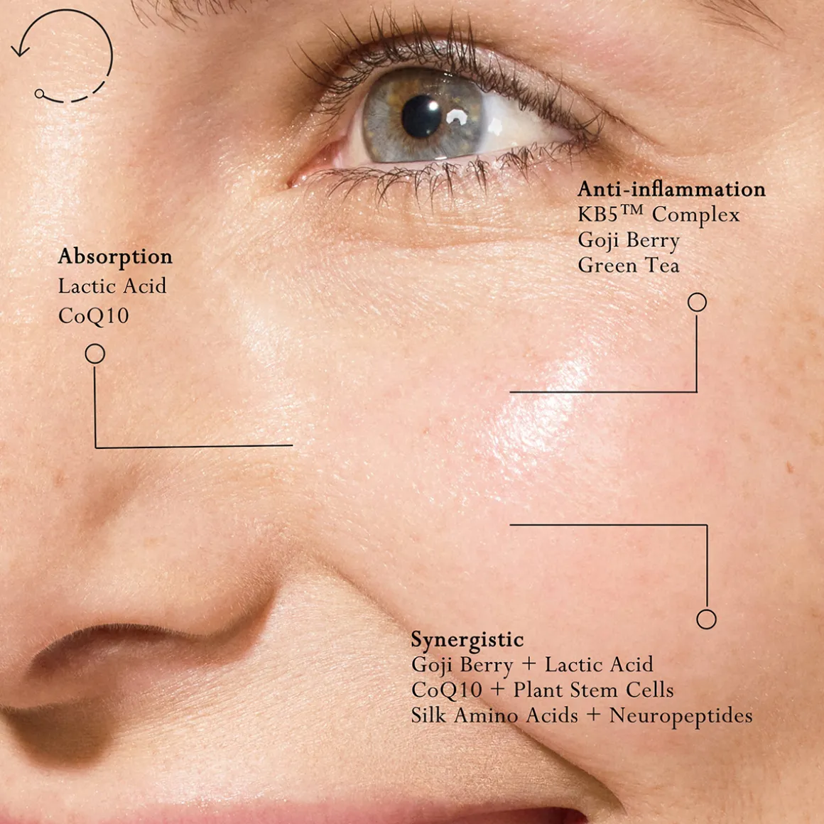 Breng een kleine hoeveelheid aan op vingertoppen en klop zacht in op gelaat, hals en decolleté. Vervolg met serum en moisturiser. Gebruik ’s ochtends en/of ’s avonds.