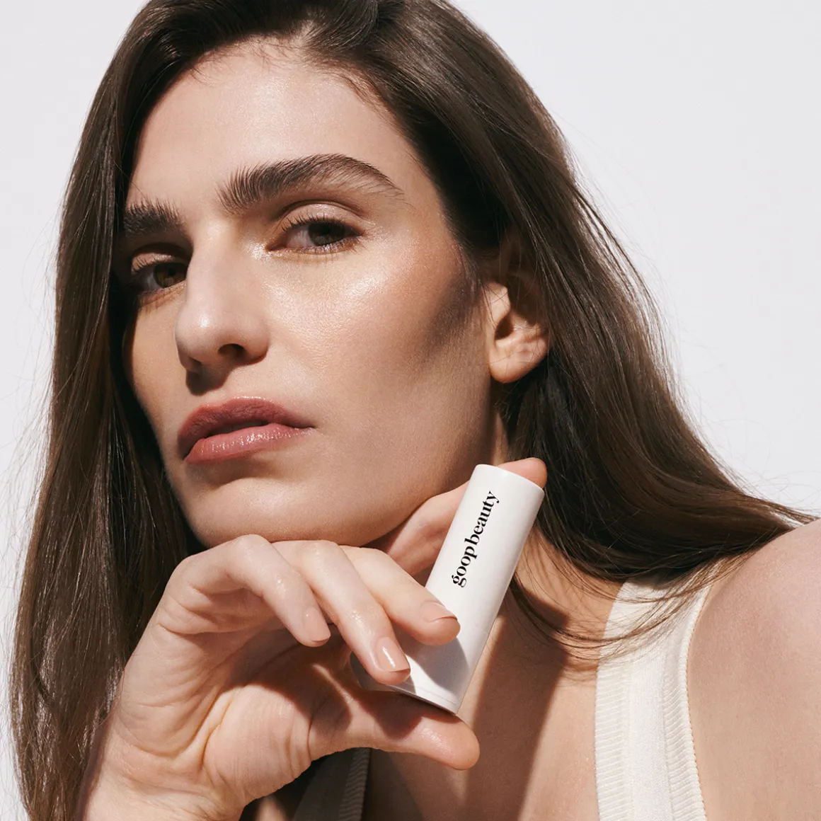 De Highlighter Stick in Aura van goop is een lichtgewicht gelstick die moeiteloos over de huid glijdt en een subtiele, parelmoerachtige gloed achterlaat. De champagnegouden tint vangt het licht op natuurlijke wijze, zonder glitters, maar met een gezonde, frisse uitstraling.