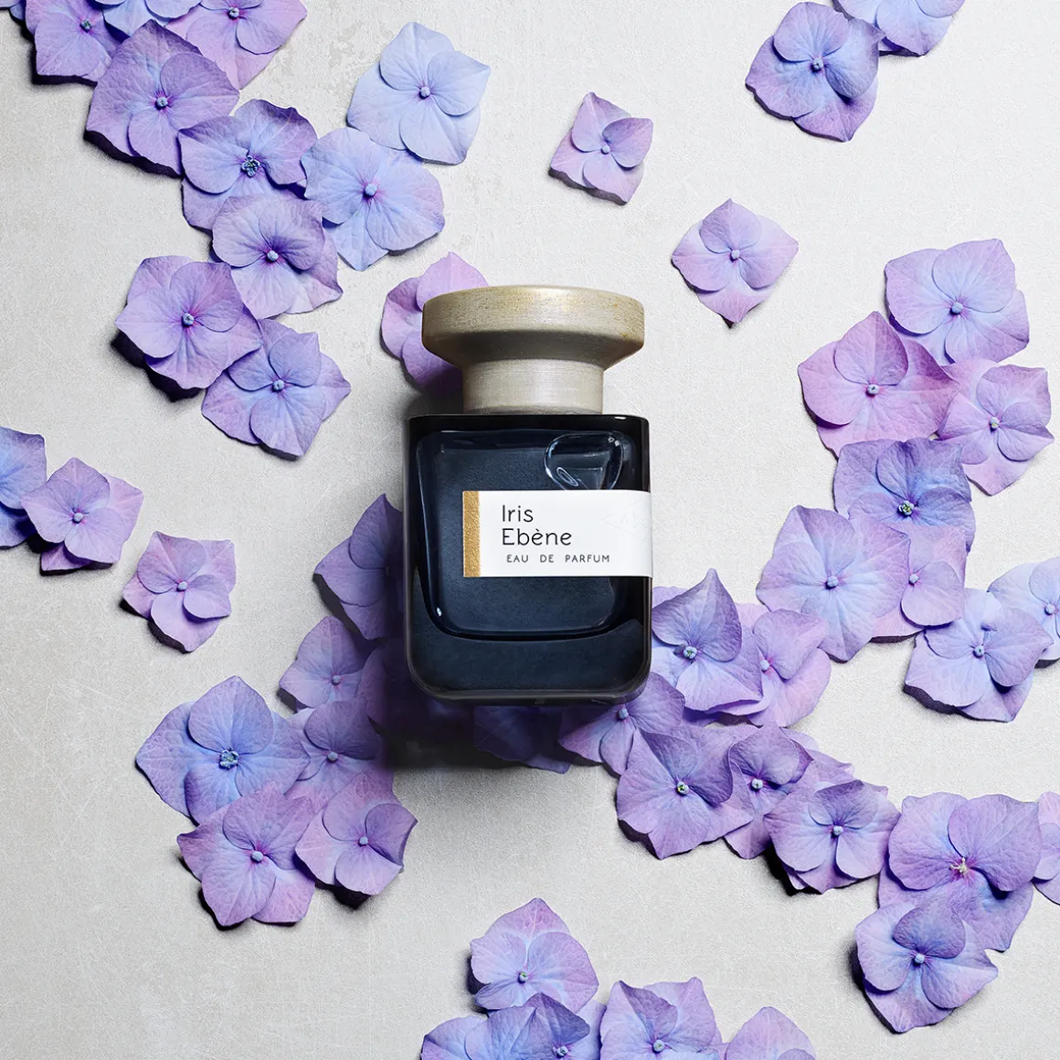 Iris Ebène Eau de Parfum van Atelier Materi is een bloemig, leerachtig parfum dat de poederige elegantie van iris in een sensuele gloed hult. Rode mandarijn en piment geven een pittige opening, waarna suède en iris een fluweelzachte diepte creëren. Sandelhout en balsem uit Peru zorgen voor een warme afsluiting.