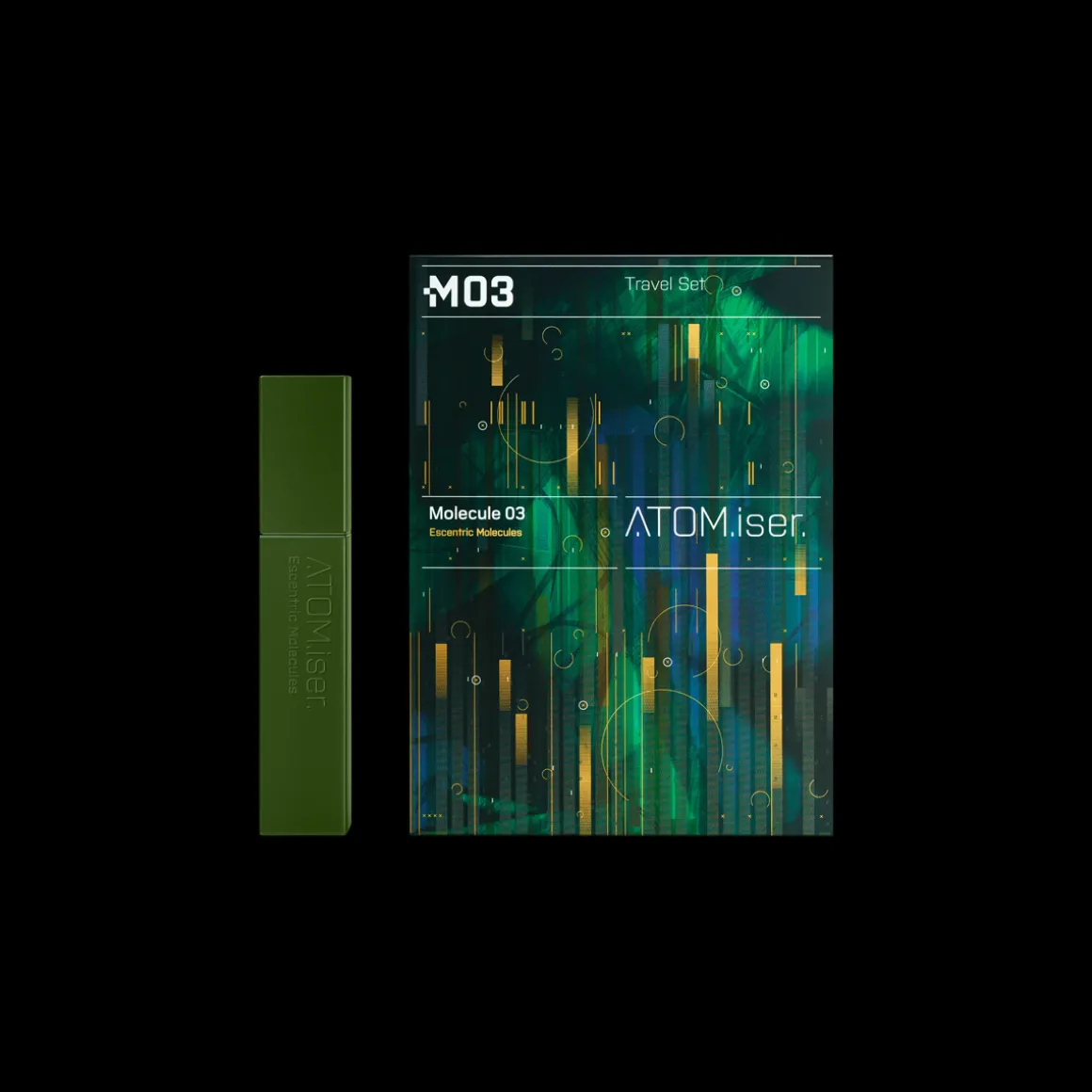 Ontdek de Molecule 03 Atomiser Set van Escentric Molecules, een verfijnde geurverpakking in reisformaat. De ATOM.iser. is gemaakt voor duurzaamheid en ontworpen om je levensstijl onderweg te verbeteren. Het draai-en-spuitmechanisme zorgt ervoor dat je je favoriete Escentric Molecules-geur altijd bij de hand hebt. Molecule 03 bestaat uit Vetiveryl Acetate, puur en uniek. Vetiveryl Acetate kan worden omschreven als een hybride molecuul, half synthetisch, half natuurlijk. Het is een fractie vetiverolie gedestilleerd uit de wortels van een Indiaas gras, dat vervolgens wordt ‘gekruist’ met azijnzuur om de bittere en leerachtige aspecten van de wortel te verwijderen. Denk aan ongemaaid gras op een warme dag, of aan een bos vermengd met warme balsamico-ondertonen, en je hebt een idee van hoe vetiver ruikt. Molecule 03 is een elegante en verfijnde geur met het houtachtige, licht grasachtige karakter van vetiver, maar veel zachter en gladder, wat resulteert in het olfactorische equivalent van een equatoriale jungle.