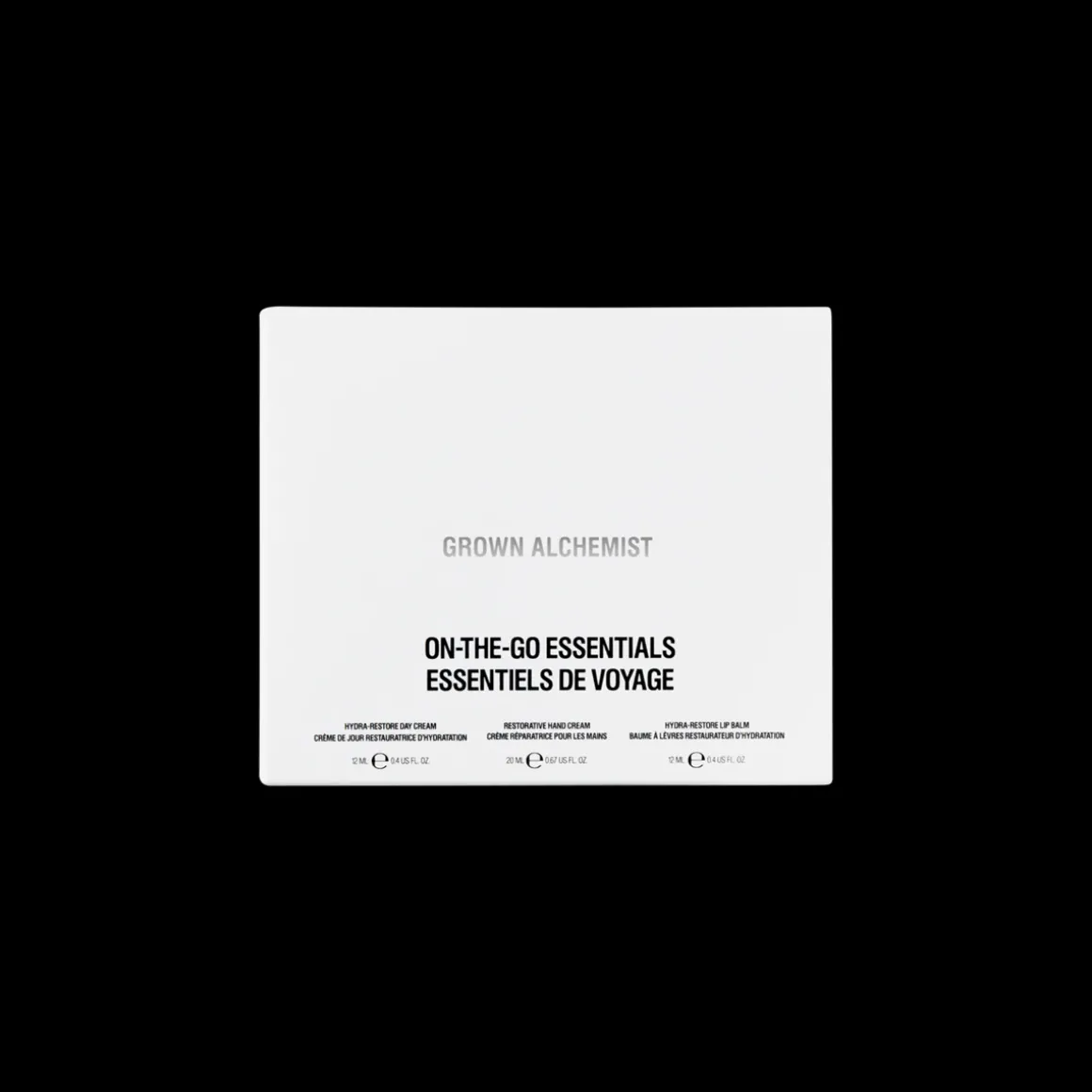 De On the Go Essentials van Grown Alchemist verzorgen en verzachten de handen met de Restorative Hand Cream (20ml), ideaal tegen uitdroging. De plantaardige formule met aloë vera, camelia en druivenpitolie hydrateert en ondersteunt de huidbarrière, zelfs bij veelvuldig handen wassen.