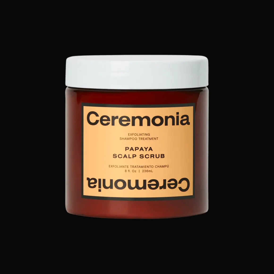 De Papaya Scalp Scrub van Ceremonia is een exfoliërende shampoo die zorgt voor een essentiële detox van je haar en hoofdhuid. Met papaya-enzymen en roze zout exfolieert het de hoofdhuid, verwijdert het productophoping en revitaliseert het haar. Guaveblad en cactusvijgextracten hydrateren de hoofdhuid en ondersteunen de natuurlijke afweermechanismen.