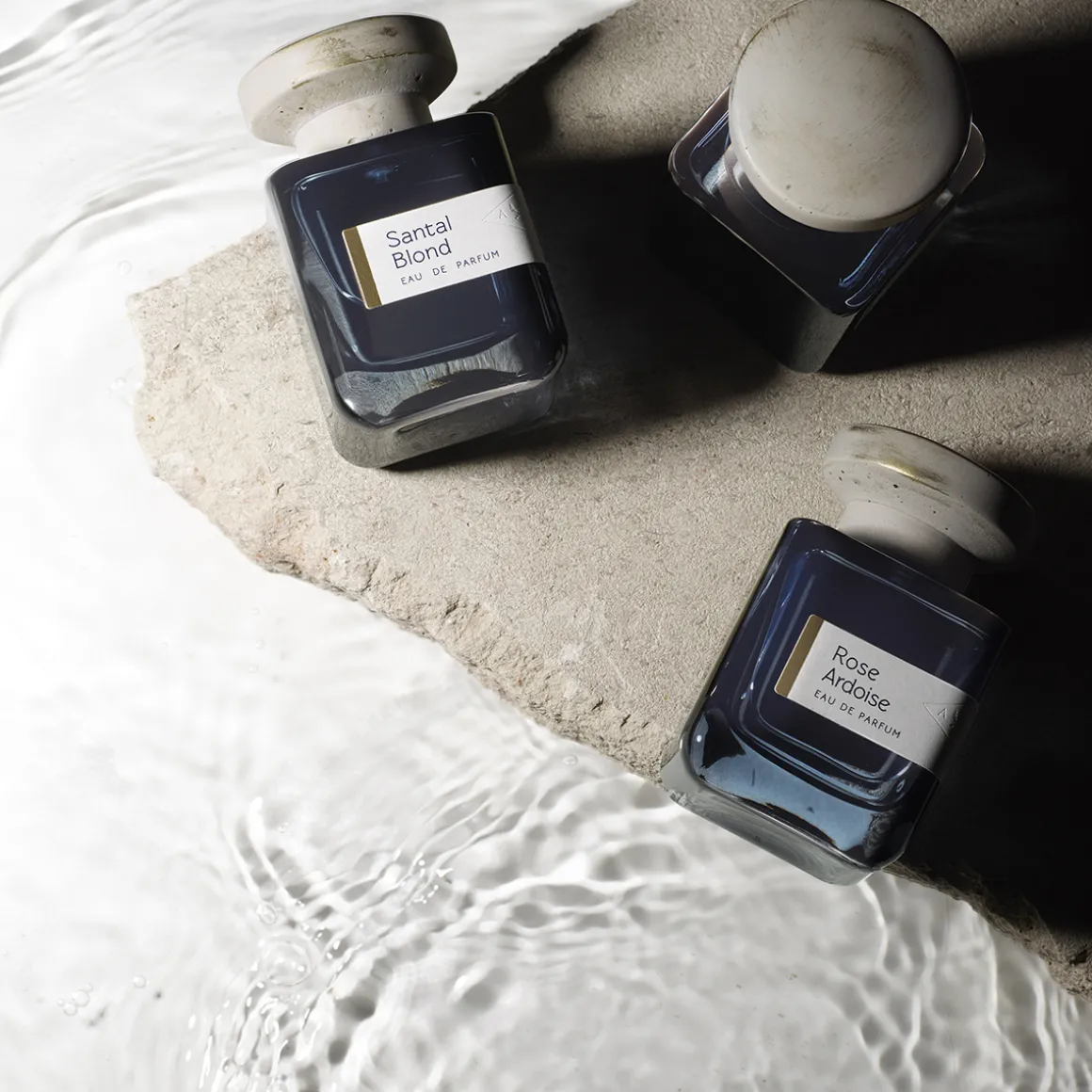 Rose Ardoise Eau de Parfum van Atelier Materi is een bloemig, houtachtig en ambery parfum dat roos een moderne, minerale dimensie geeft. De kruidige warmte van nootmuskaat en schinus molle opent de geur, waarna een melange van roos Damascena en salie zich ontvouwt. Vetiver, leer en ambroxan zorgen voor een krachtige, eigentijdse diepte.