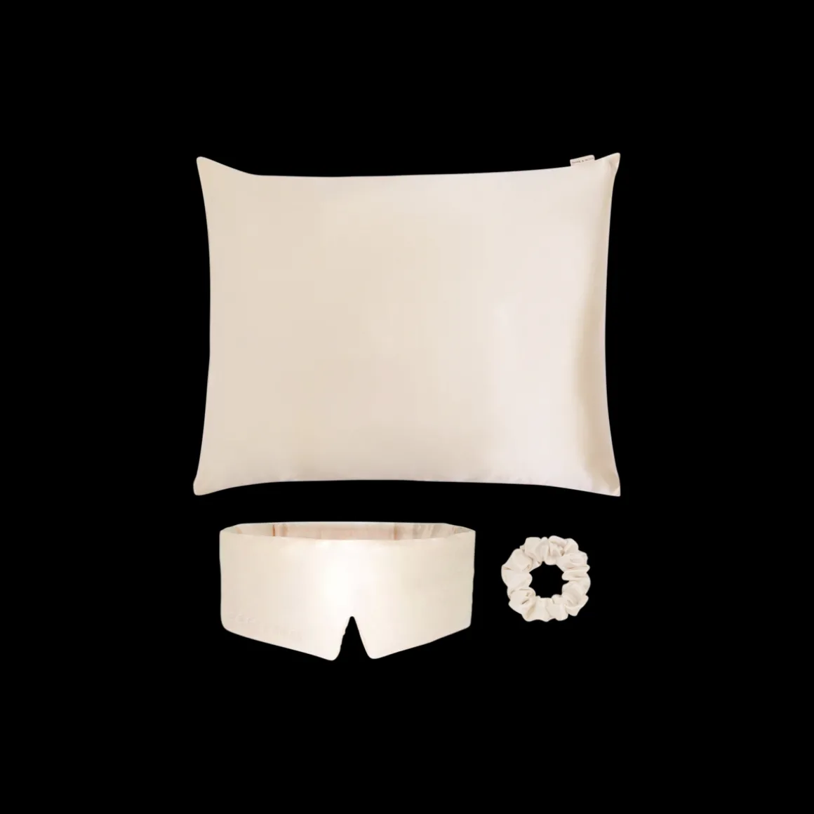 Ontdek de Serenity Bundle van Dore & Rose. De kussensloop en het slaapmasker weren niet alleen bacteriën af en verminderen wrijving tegen de huid, maar verbeteren ook de effectiviteit van andere huidverzorgingsproducten door vochtabsorptie te voorkomen.