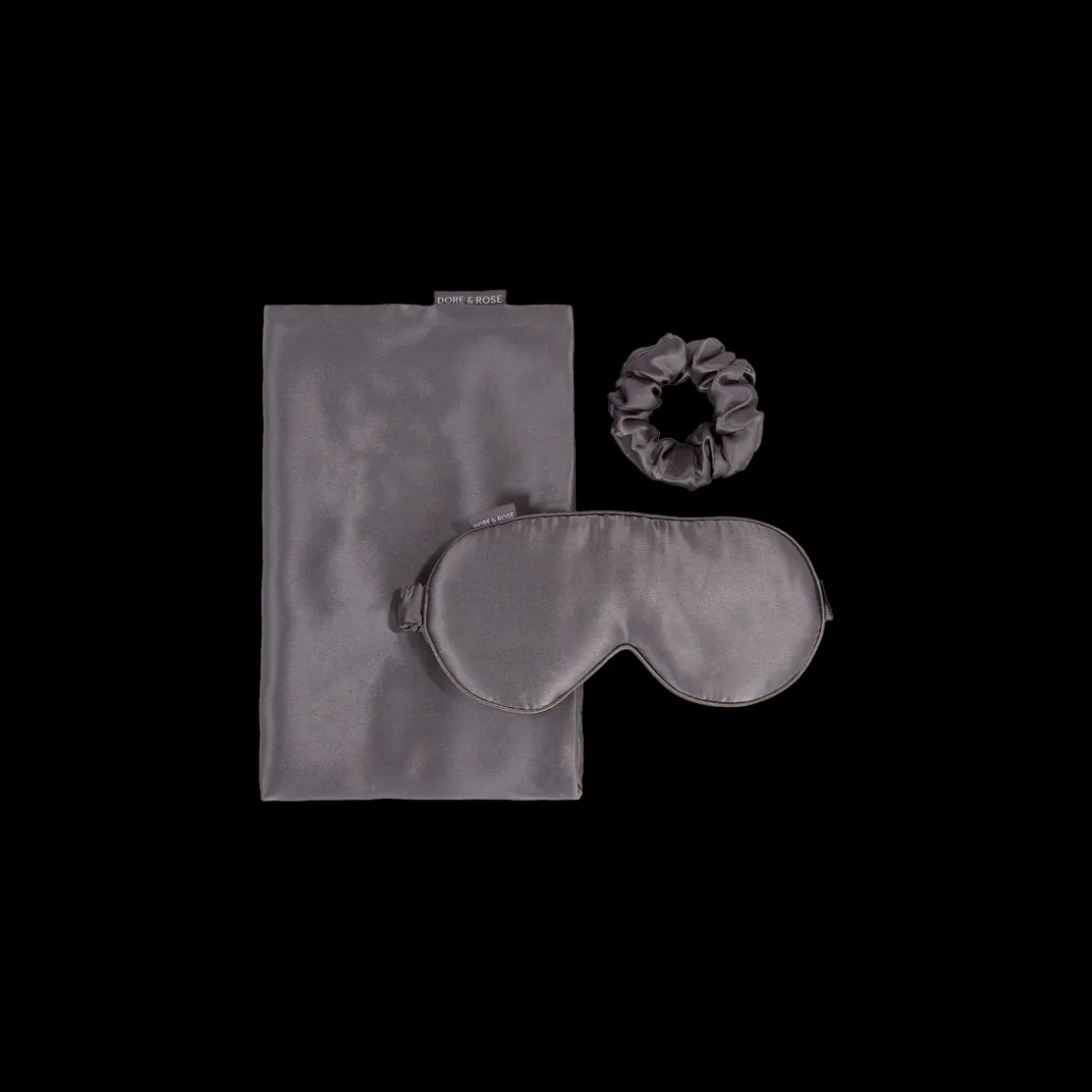 De Silk Sleep Bundle Graphite van Dore & Rose is een zijdezacht slaap essentials set om je huid en haar te herstellen. De producten zijn gemaakt van 100% moerbeizijde van de hoogste kwaliteit om je te voorzien van een heerlijke, comfortabele nachtrust. Het zijde is behandeld met zilverionen technologie om bacteriën te elimineren en onzuiverheden tegen te gaan. Perfectioneer je huid en haar terwijl je slaapt en geniet van een stralende, verzorgde uitstraling wanneer je wakker wordt.