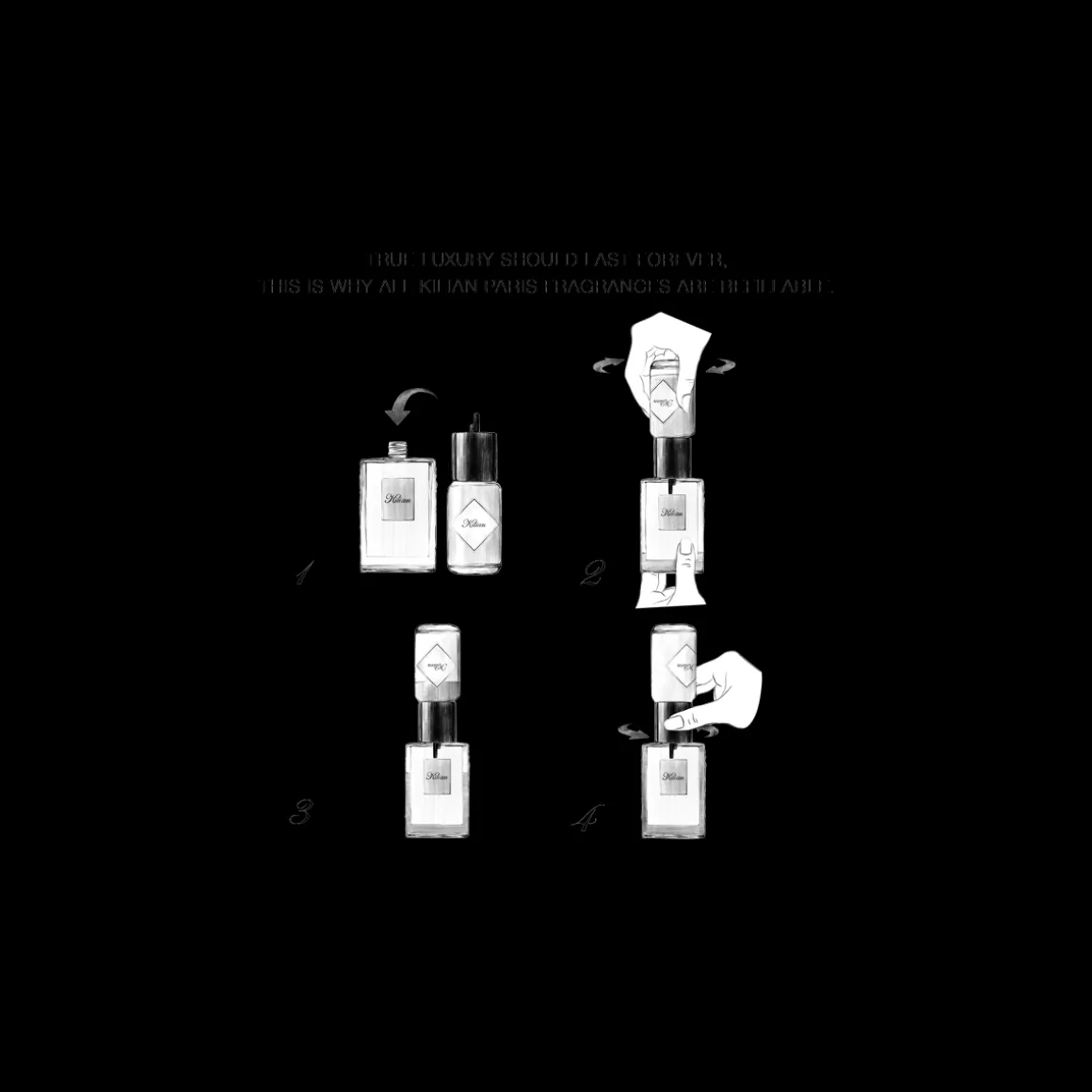 Draai de top van de originele flacon en gebruik de duurzame navulverpakking om het parfum bij te vullen.