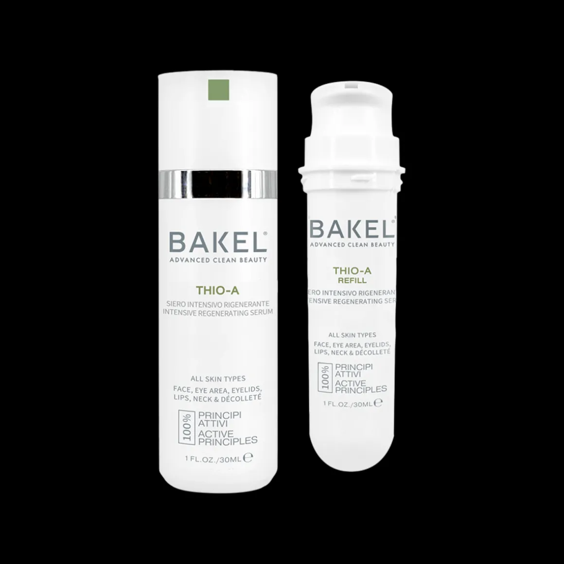 Thio-A Serum Case & Refill van Bakel is een geavanceerd serum dat werkt tegen de vertraging van celvernieuwing en onevenwichtigheden in talgproductie. De zesentwintig pure actieve ingrediënten met bewezen anti-verouderende werking stimuleren celregeneratie en verbeteren zichtbaar de teint, elasticiteit, gladheid en gelijkmatigheid van de huid.