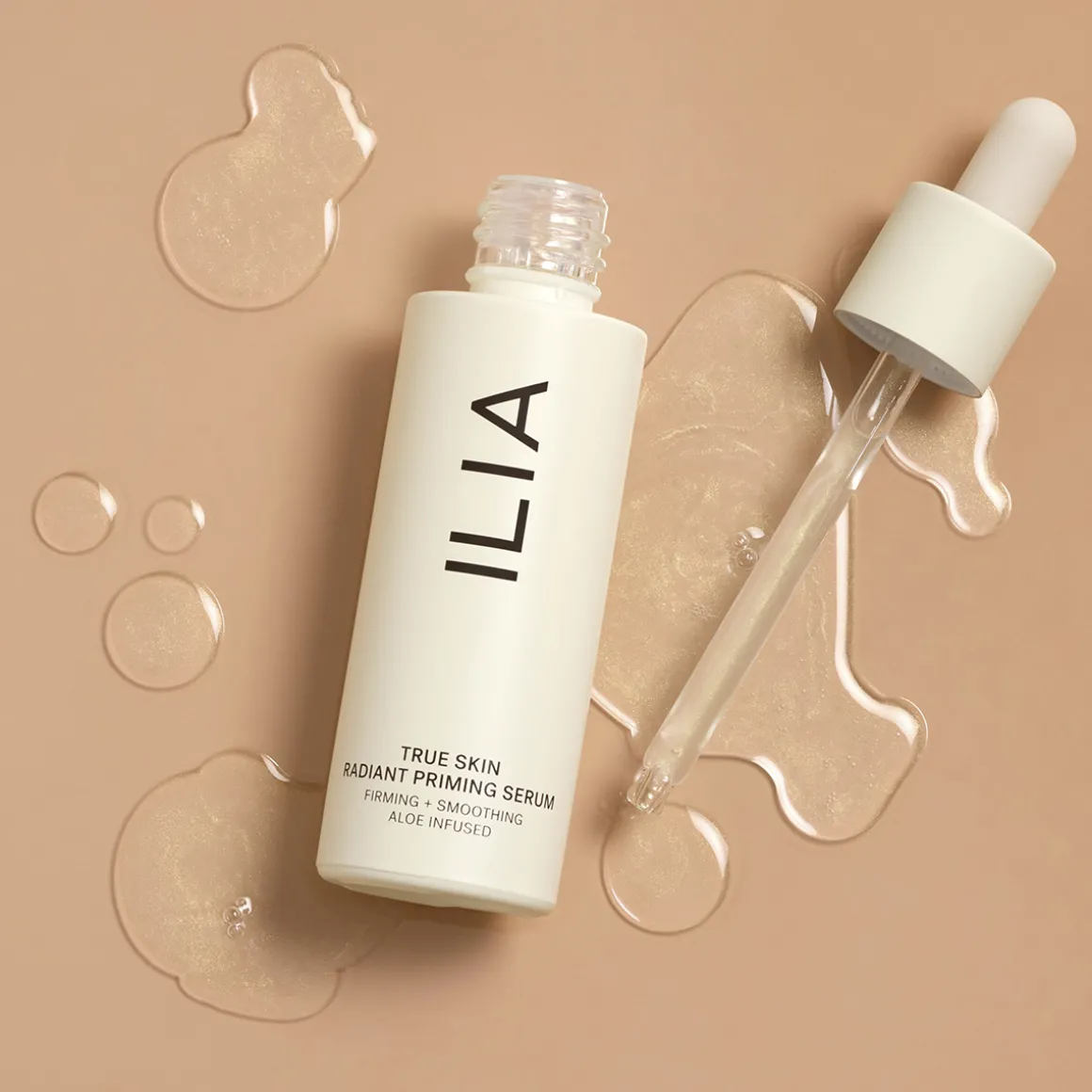 De True Skin Radiant Priming Serum van ILIA combineert huidverzorging met een perfecte basis voor make-up. Deze siliconenvrije primer hydrateert, verstevigt en kalmeert de huid, terwijl het poriën en fijne lijntjes minimaliseert. Het resultaat is een zijdezachte huid met een natuurlijke glow, perfect voorbereid op moeiteloze make-upapplicatie.
