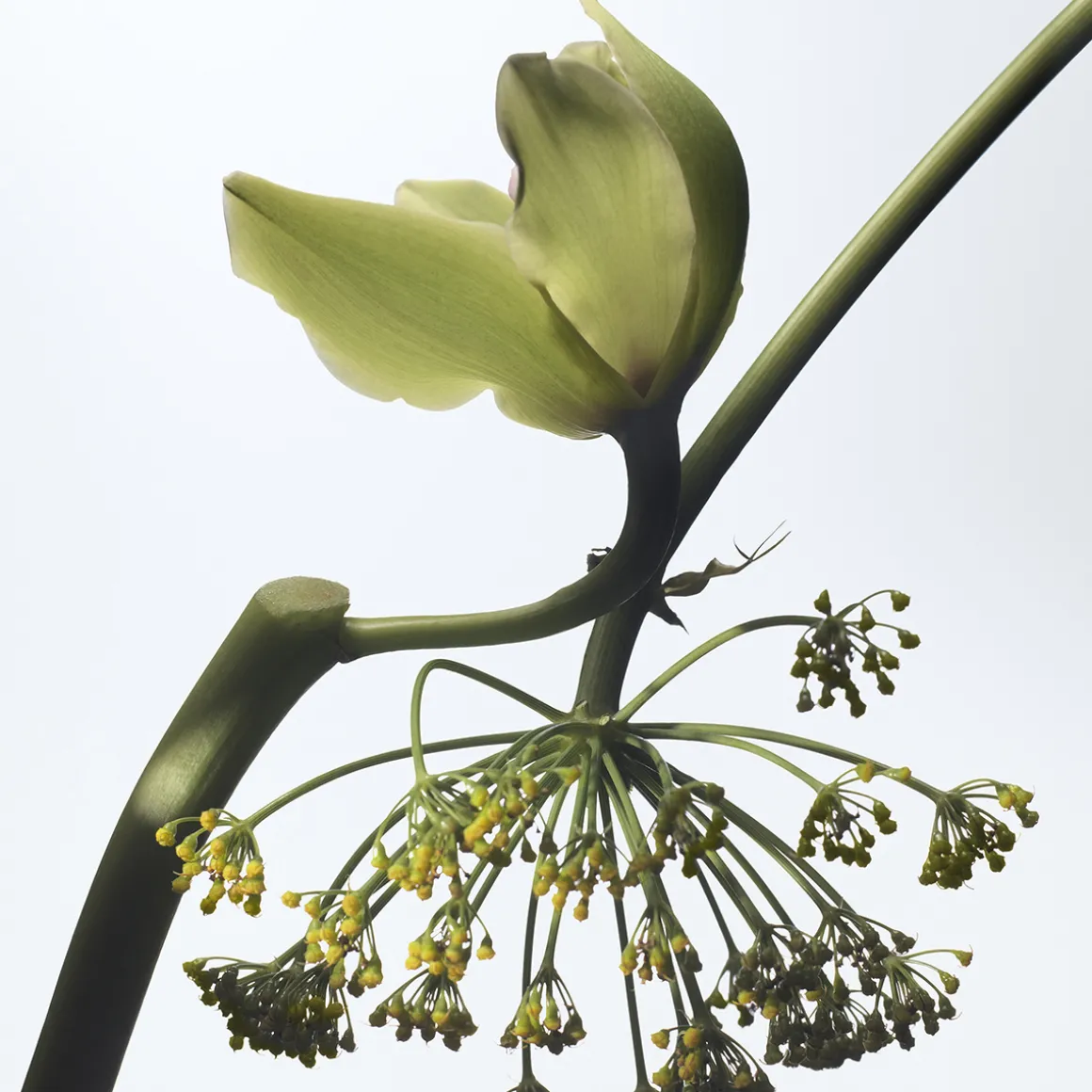 Ontdek in Vanille Camouflage Eau de Parfum van Dries van Noten de kunstzinnige illusie van een groene vanille. Deze creatie creëert een gevoel van zachtheid op de huid. De groene, harsachtige facetten van galbanum transformeren de vanille, de likeurnoten van bourbonvanille en het romige, amandelachtige aspect van de Tahitensis verrijken de complexiteit en rijkdom ervan. Een unieke en subtiele gelaagdheid die steeds intenser wordt. Een dubbele expressie van mode en kunst, het flacon verenigt diep groen glas en kostbaar porselein met poëtische, aquarelachtige bloemen alsof ze uit een schilderij zijn gehaald.