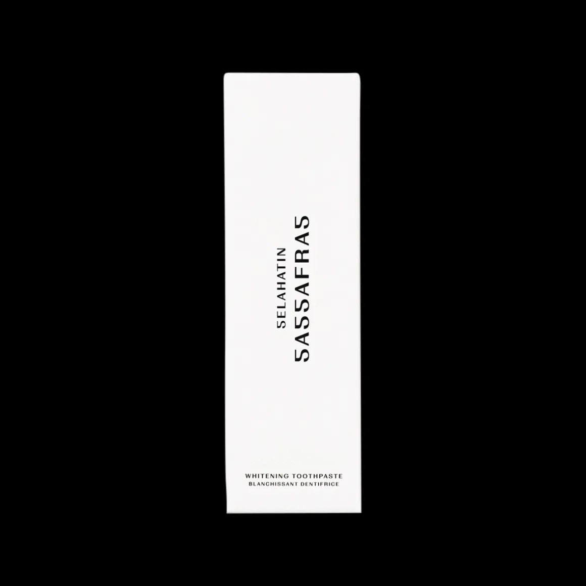 De Whitening Toothpaste Sassafrass van Selahatin is een witmakende tandpasta zacht genoeg voor dagelijks gebruik. Een vierdimensionaal verjongingsproces zorgt voor een diepe reiniging en exfoliëert, polijst en bleekt de tanden. Ontstekingsremmende ingrediënten en antioxidanten bevorderen het bacteriële evenwicht en houden het tandvlees gezond. Bovendien worden gevoelige tanden proactief verzorgd en gehydrateerd. Voor een ultiem frisse, smaakvolle poetservaring is de tandpasta verrijkt met aroma’s van sassafras, sarsaparille, wintergreen, pepermunt en menthol.